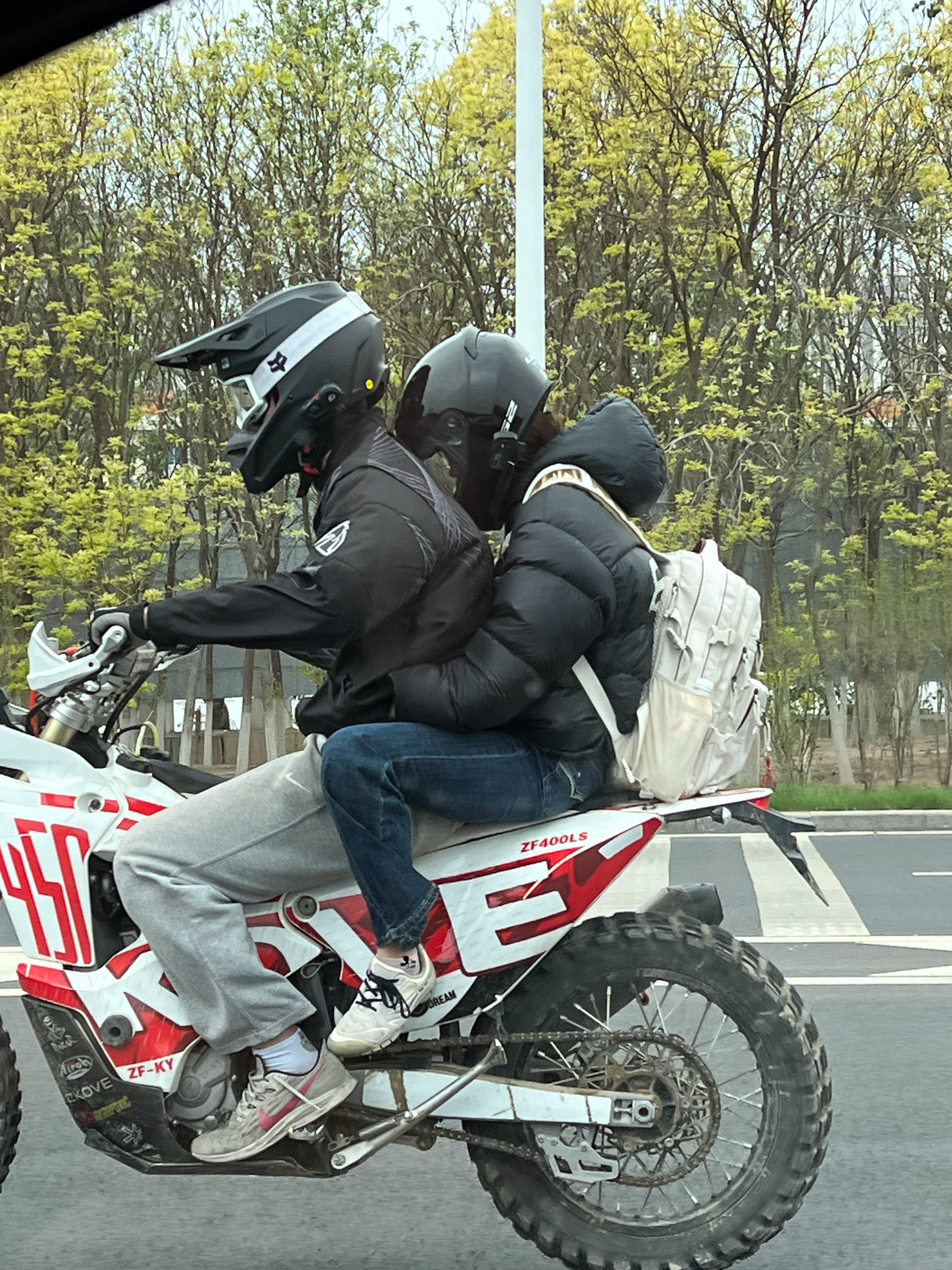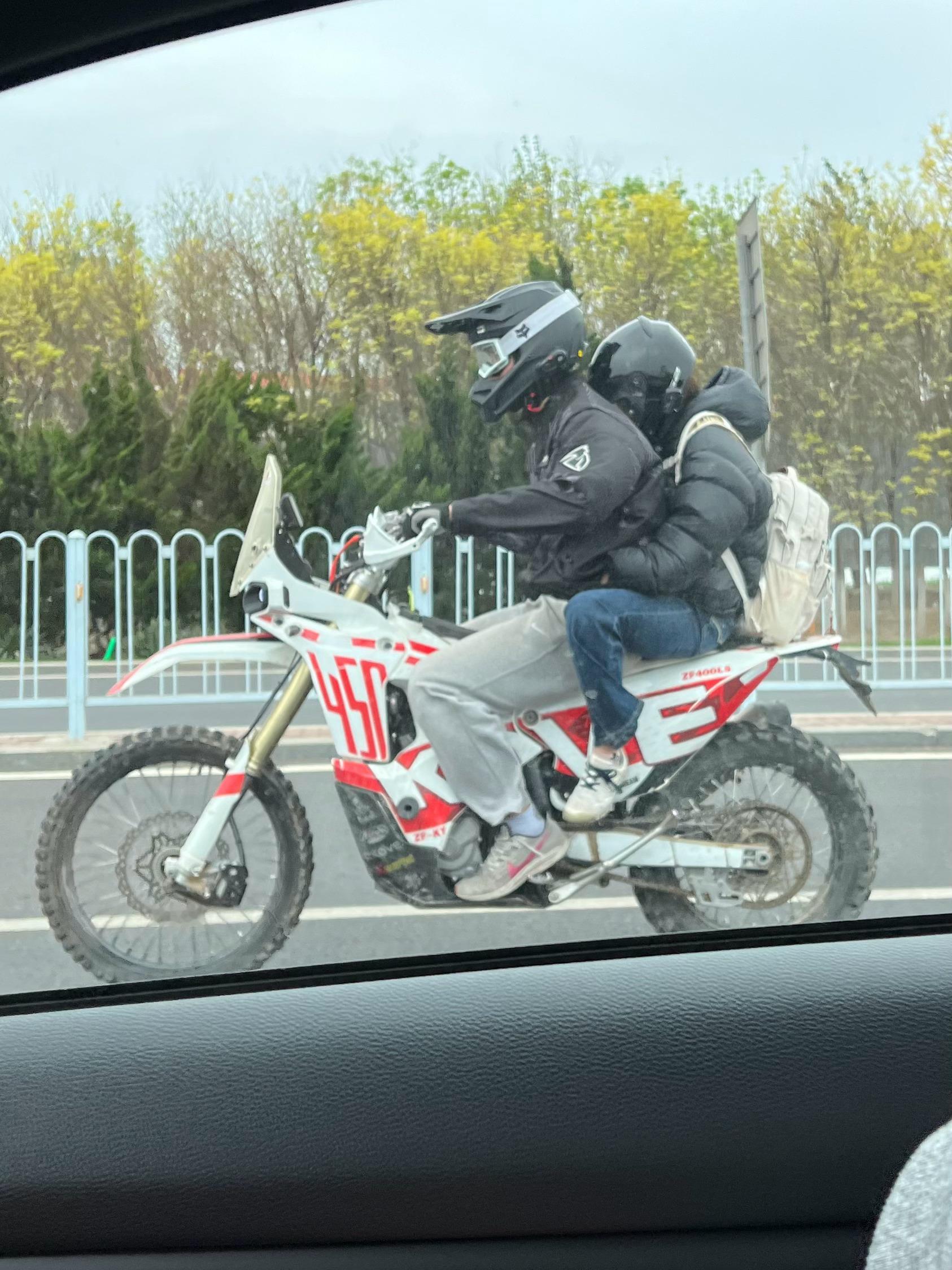 刚才路上偶遇的,骑摩托的两个人后座坐姿有点惨~再一想,刚才还下了大雨 ,更惨了 天津