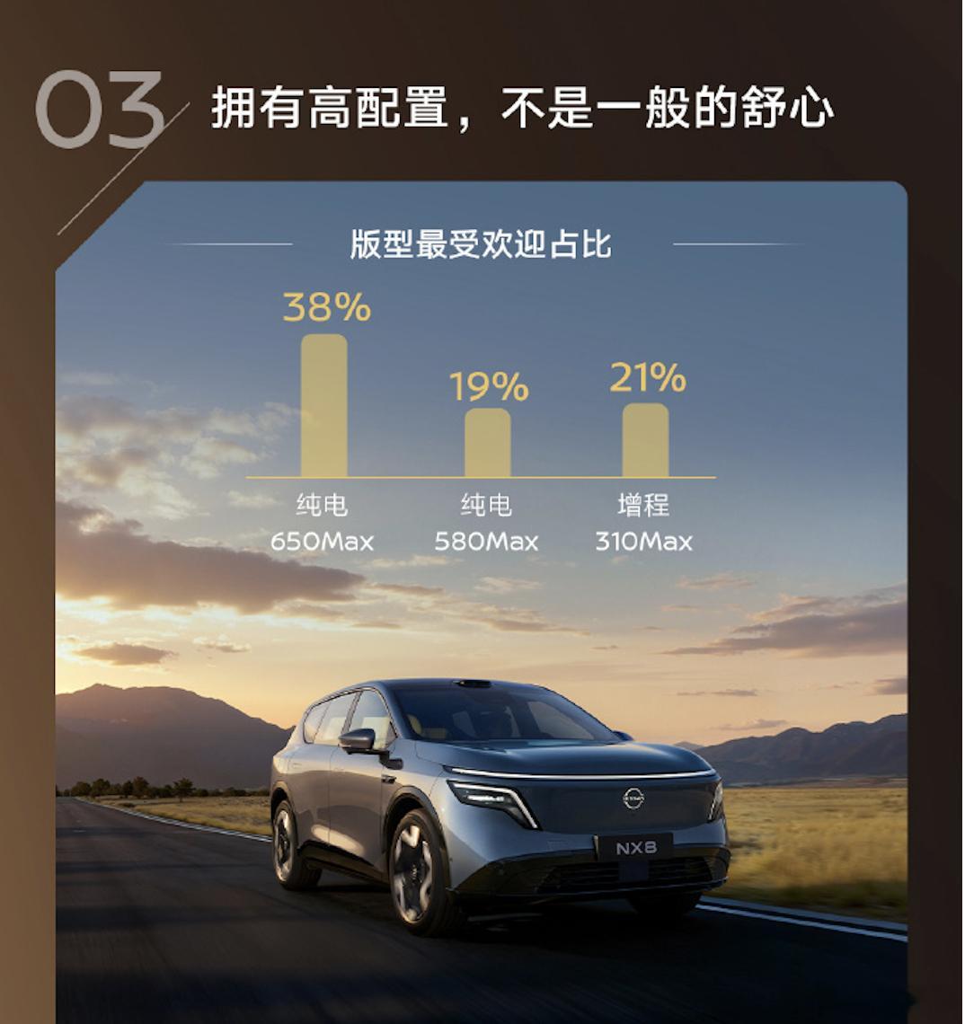 东风日产给出了一份NX8首批车主图鉴。还挺有意思的,大家一起来看看:一、男性车主数量明显高于女性,车主年龄段35-49岁占最大比例,且已婚用户占主流,说明这款车还是以家用为主,这也符合NX8的产品定位。二、1-3线城市是购买主力,其中2线城市最多,占比为32%,NX8还是更受城市家庭的欢迎。三、版本方面,纯电650Max版销量最高,这个版本CLTC续航650km,800V平台,5C超充,这个配置性价比其实是很高的。四、最受欢用的配色是墨海蓝和曜石黑,低调沉稳,符合东风日产一贯的气质底色。五、用车场景方面,工作通勤占比最高,为35%,其次为出行家用,占比33%,第三是自驾旅行,占比21%。总体来看,NX8基本能满足普通家庭全场景用车需求,用户需要的就是车企最应该看重的。东风日产NX820万级大大大五座智慧舒享suv新能源汽车新能源汽车[超话]东风日产大v聊车