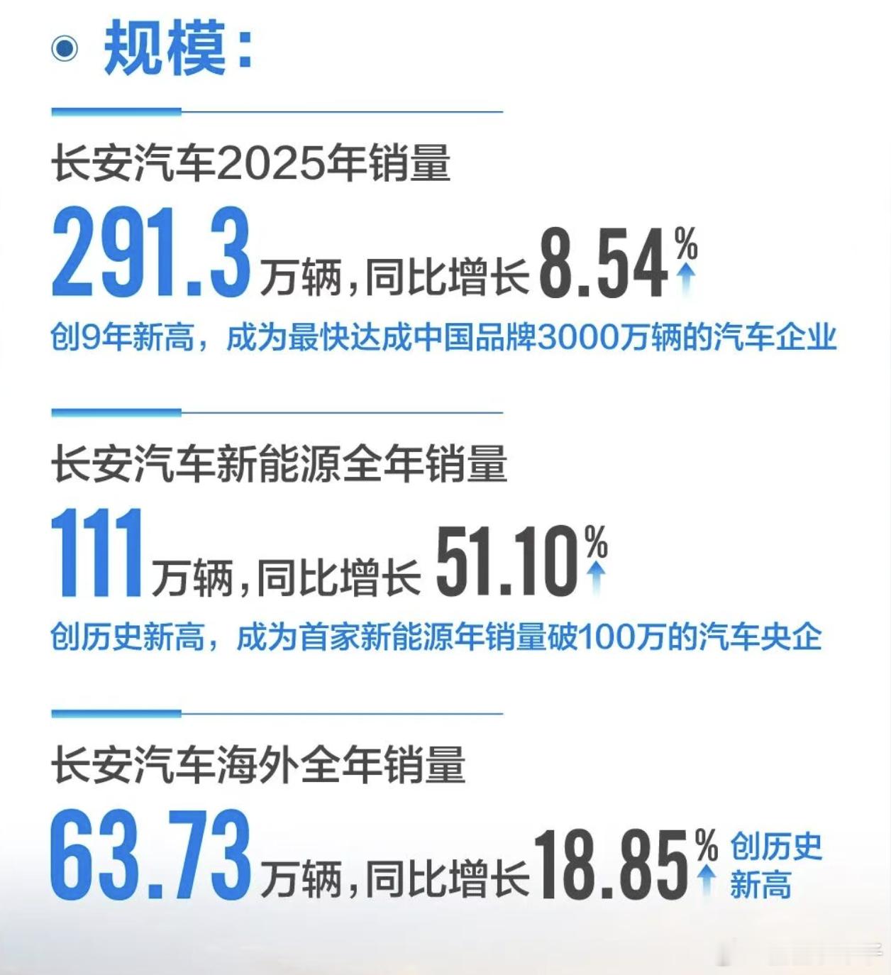 去年全年长安汽车销量291.3万辆,这个数字是九年来的新高,全年新能源汽车销量111万辆,同比增长51.1%,这个数字刷新了长安汽车的历史记录。海外销量63.7万辆,同比增长18.85%。