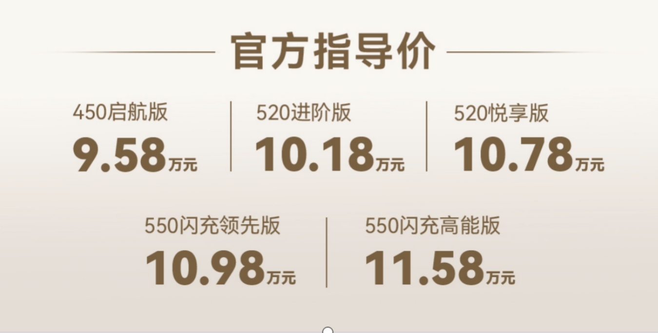 品牌首款闪充车型领汇e7正式上市,推出5个配置版本,售价9.58-11.58万元。权益方面,各项政策明显区分使用场景,比如非营运车主可享受一年闪充桩免费充电,营运车主则是一年闪充桩免服务费,而且仅适用于550闪充领先版、550闪充高能版车型。此外,非营运首任车主享三电终身质保及整车6年或15万公里包修;营运车辆则为三电6年或60万公里、整车1年或10万公里包修。