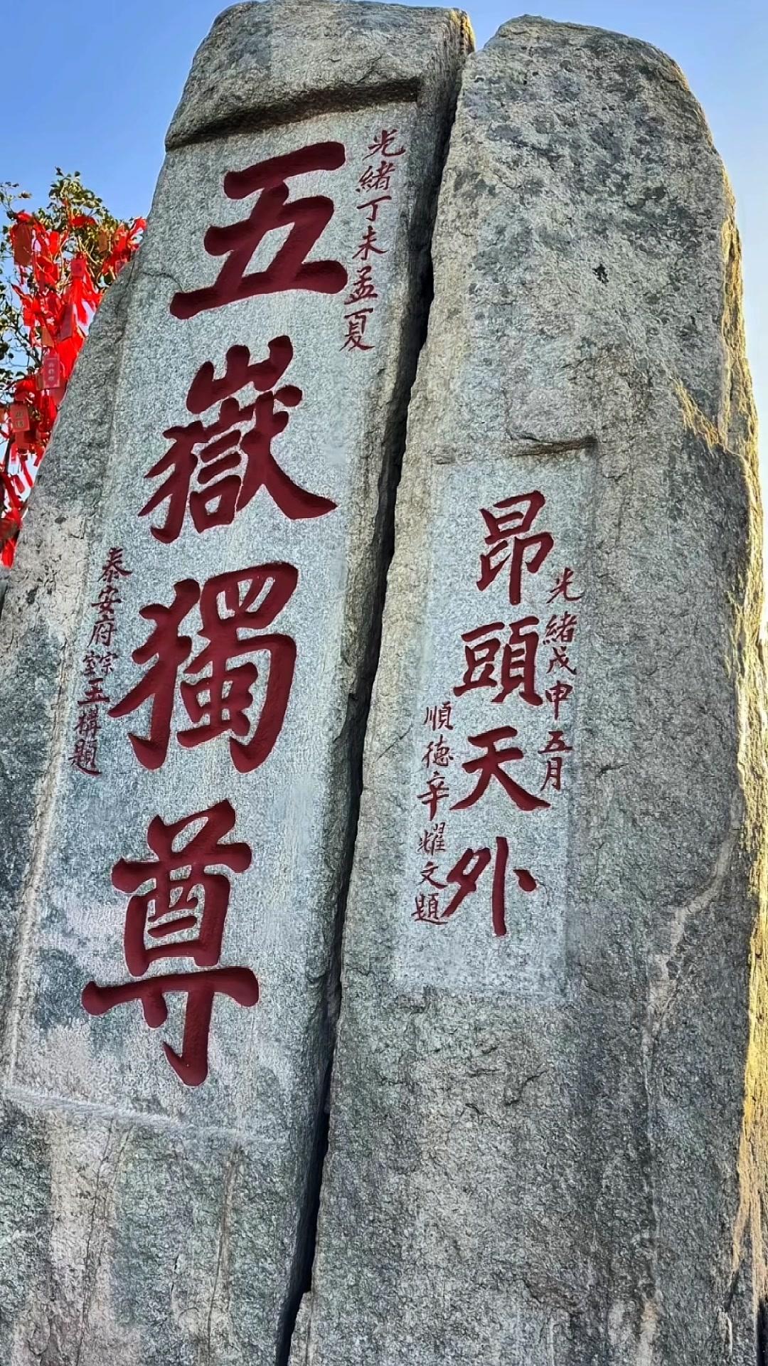 在泰山玉皇顶东南侧,有处摩崖石刻群格外瞩目。其中一块高2米多、宽1米多的岩石上,苍劲有力地刻着"五岳独尊"四个大字,这是清光绪三十三年(1907年)泰安府宗室玉构题书。