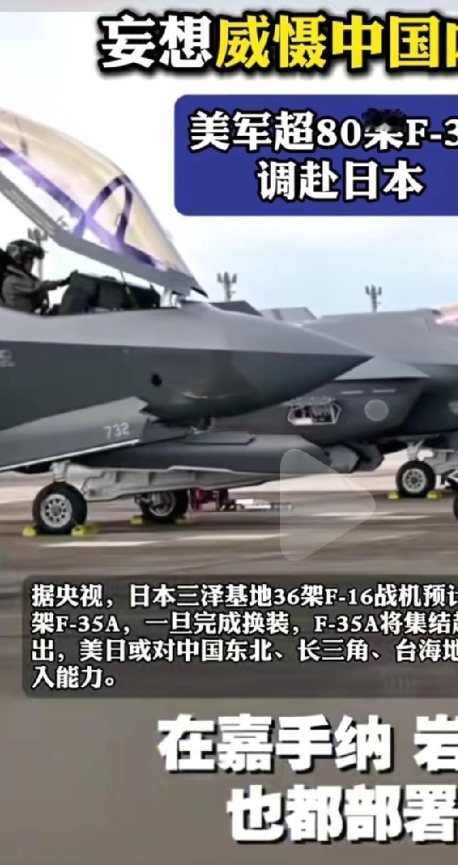 日本妄图威胁中国内陆,日本三泽基地,更换F35A战机,这是一款5代隐形战机,原来是F16,这可是临时换装。 在日本嘉手纳,岩国基地都部署F35,ABC各种型号都有,对我们形成了很大的威慑。