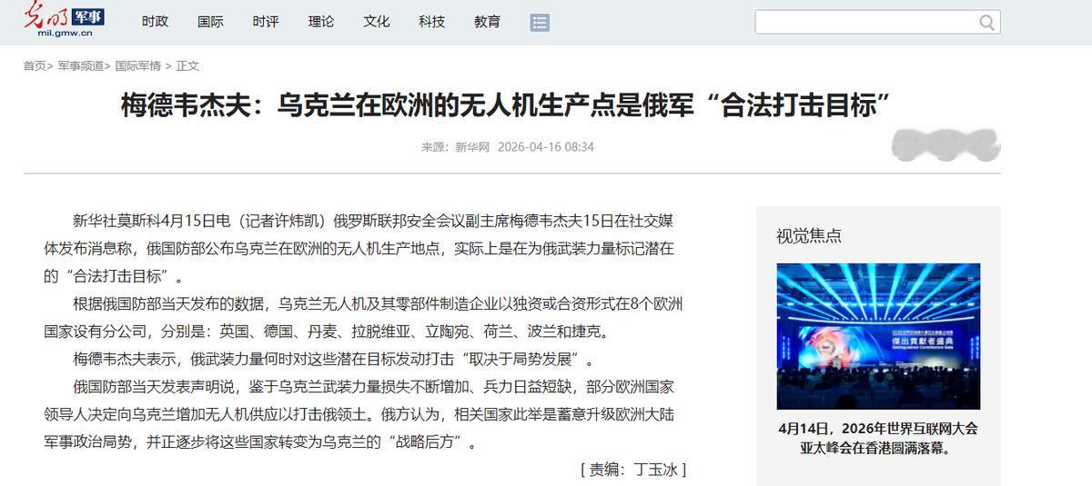 4月15号,俄罗斯的梅德韦杰夫在网上发消息,说得特别实在,俄罗斯国防部公布的那些乌克兰在欧洲的无人机厂,其实就是给俄军标好了“能合法打的目标”。