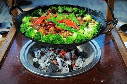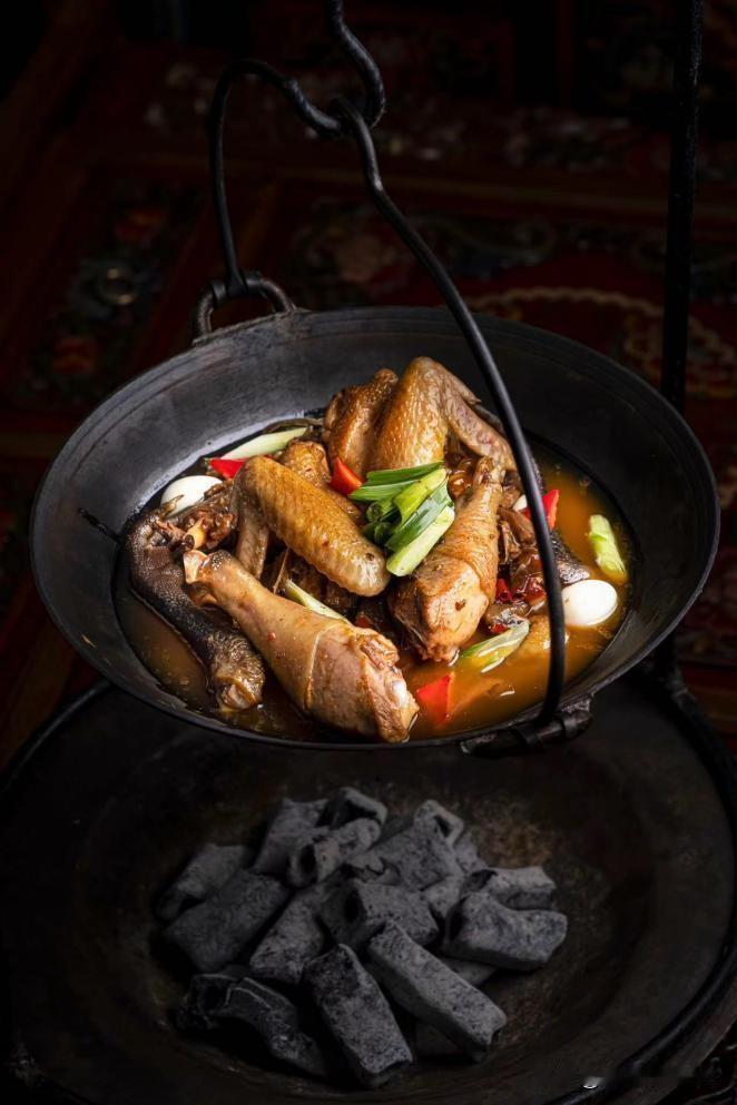 大别山区的招牌,炭火吊着铁锅,炖煮腊肉、土鸡、野笋、豆腐。越煮越香,特别适合春季微凉天气。