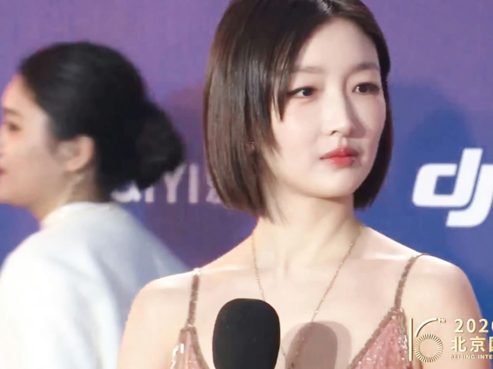 周冬雨粉裙短发 今天北影节蓝色红毯上的周冬雨格外的舒展大气,一身粉色礼服加上利落