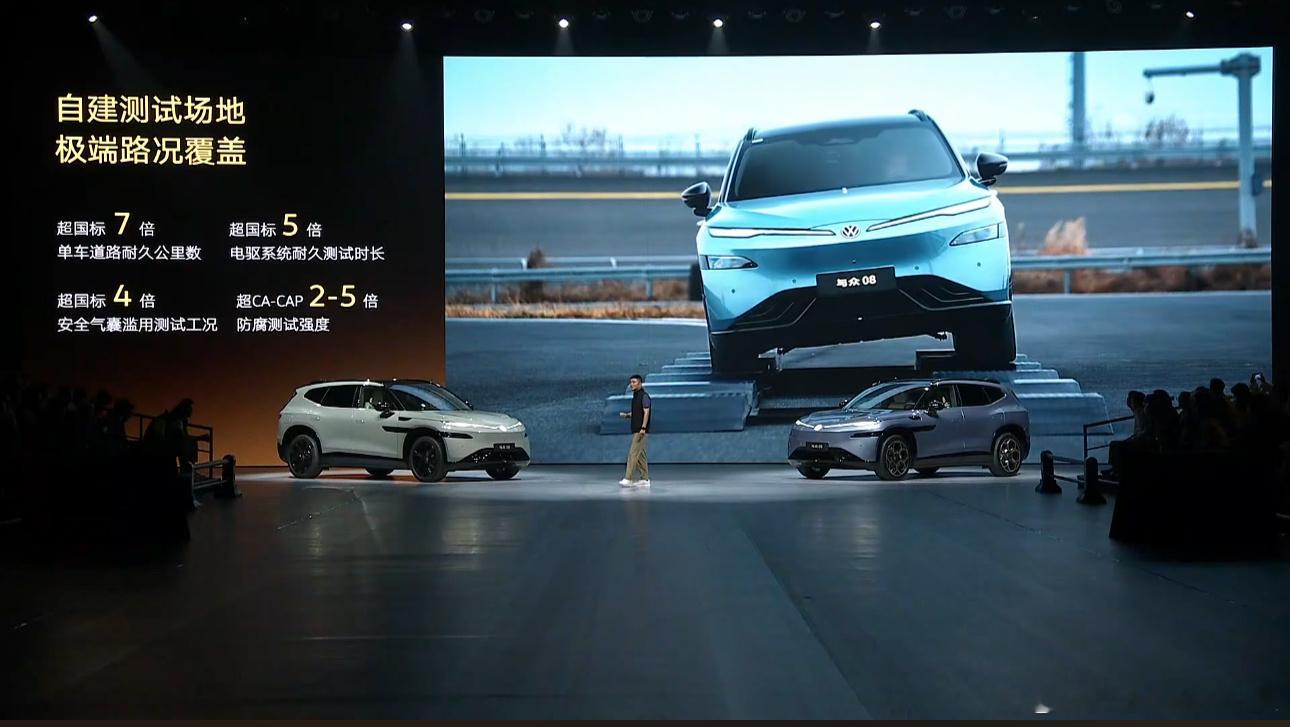 这里想和大家聊到安全,大众这“黄金标准”真不是吹的!与众08,车身用料贼硬——超80%高强度钢,关键部位强度1800兆帕,笼式结构像铠甲。电池全系标配宁德时代,上盖镀锌钢+陶瓷绝缘,1000多度高温扛得住;底部护甲26毫米厚,能顶住1300焦耳撞击,超国标8倍!碰撞后5毫秒就断电。