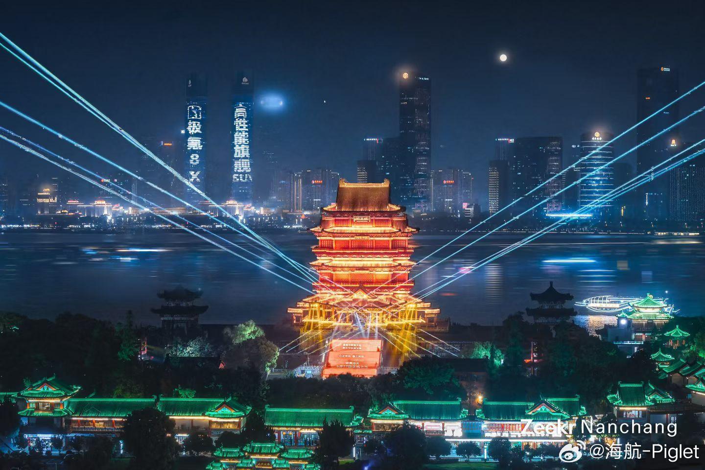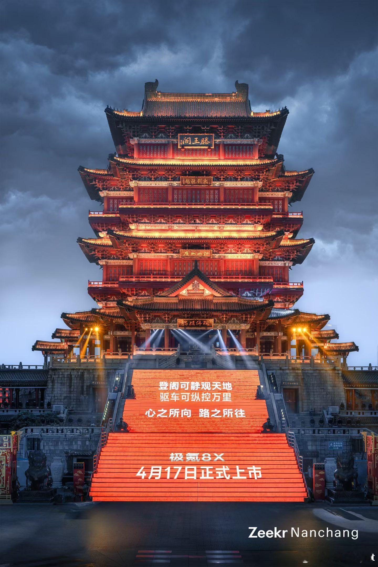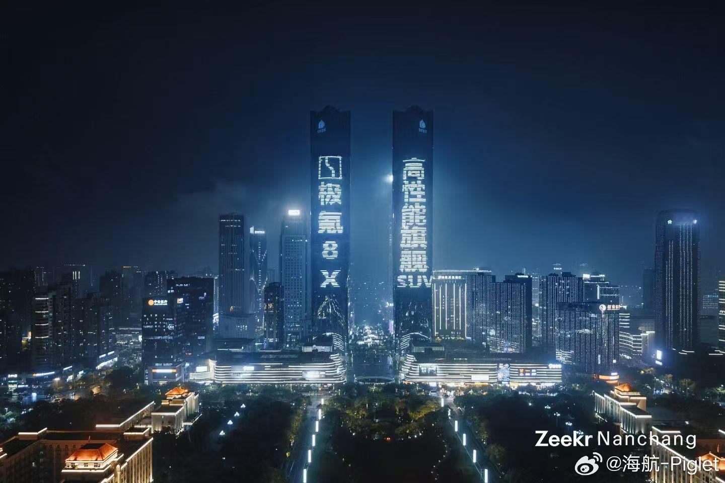 极氪8X 4月17日上市,今晚滕王阁双子塔就先亮灯了。