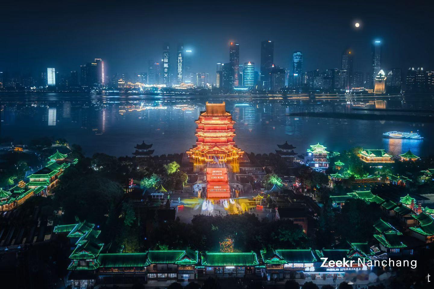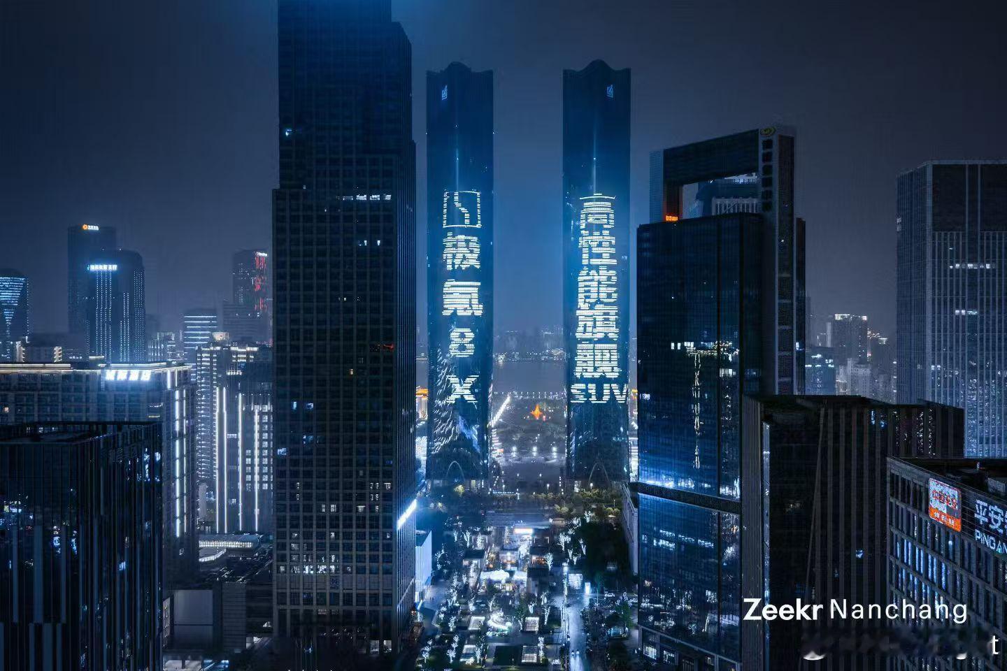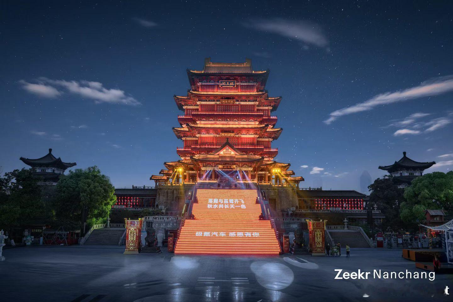 极氪8X 4月17日上市,今晚滕王阁双子塔就先亮灯了。