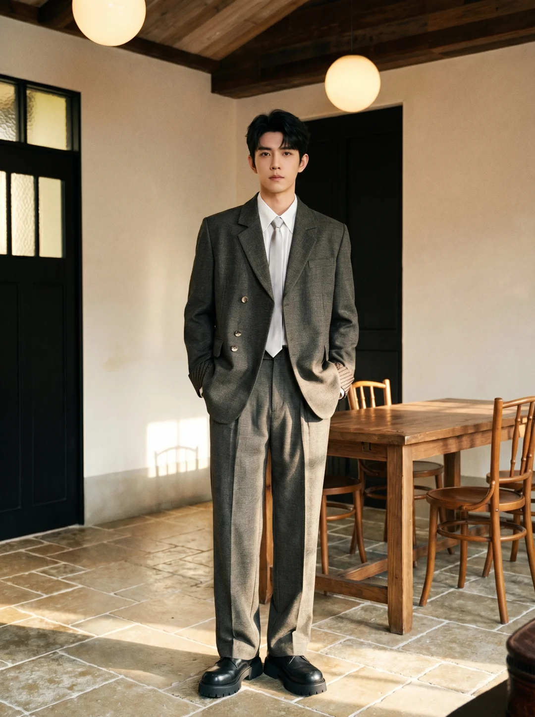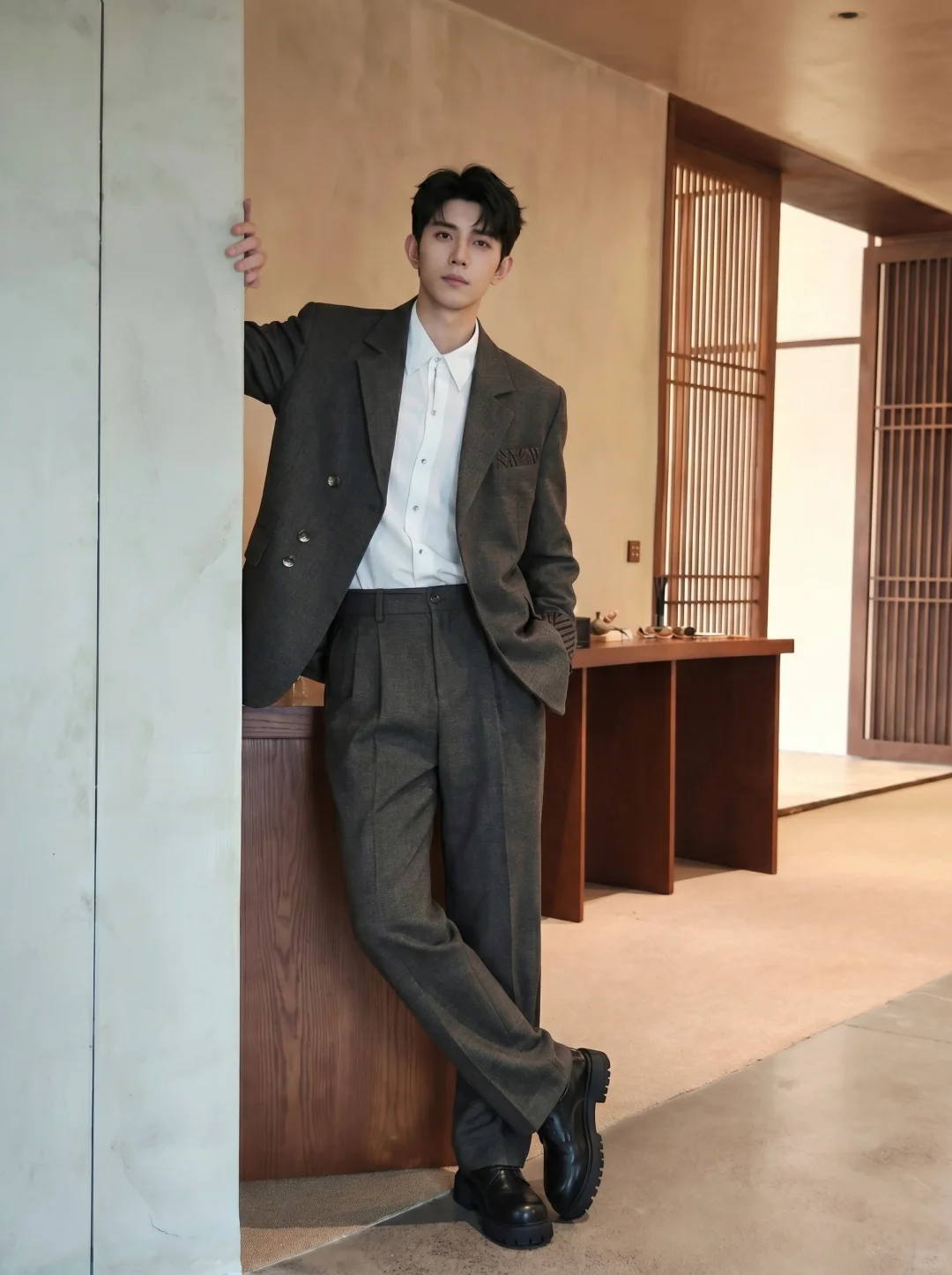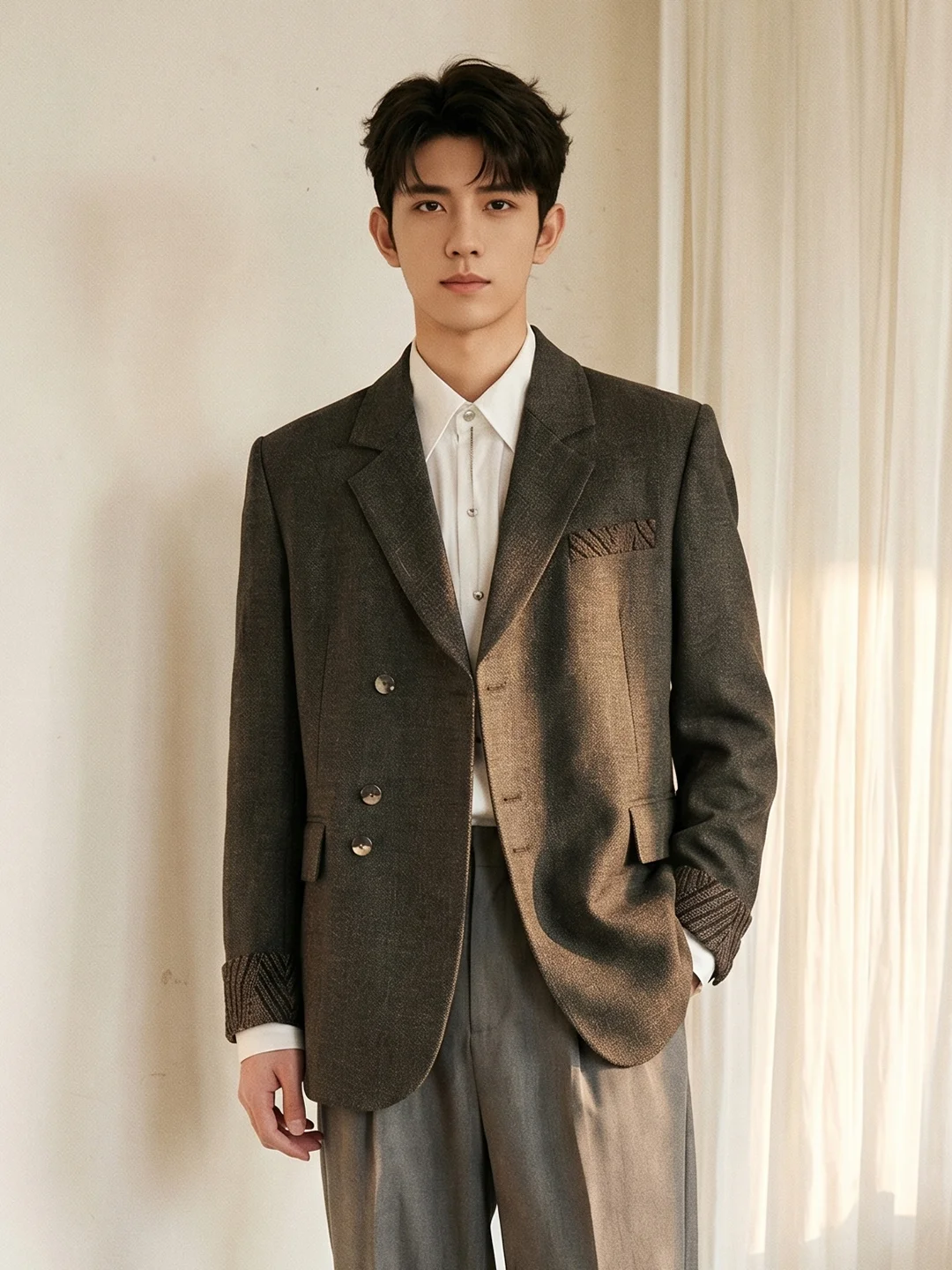 每次穿西装出门,总觉得身体被死板的剪裁紧紧框住,稍微动一下就浑身不自在?走在阳光下,面料那种生硬的反光感,更是瞬间让人气场全无。🍂想要毫不费力地穿出“智性老钱风”,面料的呼吸感和廓形的包容度缺一不可。上周五傍晚在梧桐树下喝咖啡,我就穿了这套双色纱厚款西服。当落日余晖打在肩膀处,双色纱线交织出的那种哑光微肌理感,立马拉开了和流水线成衣的差距。☕️没有死板的束缚,内搭我选了超细旦纤维衬衫,柔软细腻的触感贴在皮肤上,非常放松。下半身搭配同色系的双色纱直筒西裤,垂坠感极佳的线条在走动间刚好微盖住鞋面,把腿部比例修饰得利落笔挺。🚶‍♂️这套穿搭刚好拿捏了得体与慵懒的分寸。高级的衣服从来不是枷锁,而是你的底气。