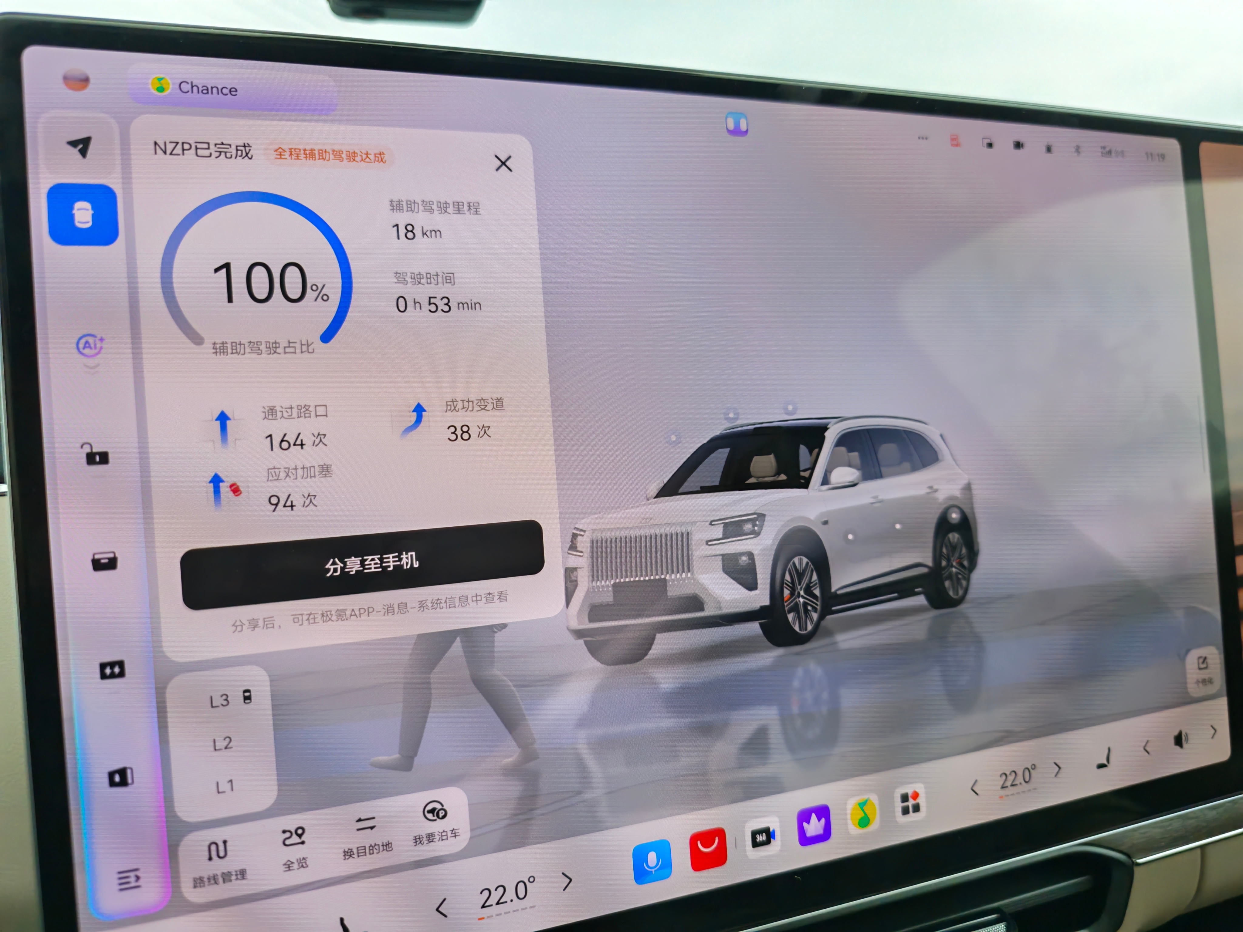 周日的吉利超级智能体体验日,帆哥开千里浩瀚H7的极氪8X 一共跑了四段行程,其中三段占比 100%,那段没100%的发生在超复杂的城中村,所以整体来说还是满意的。