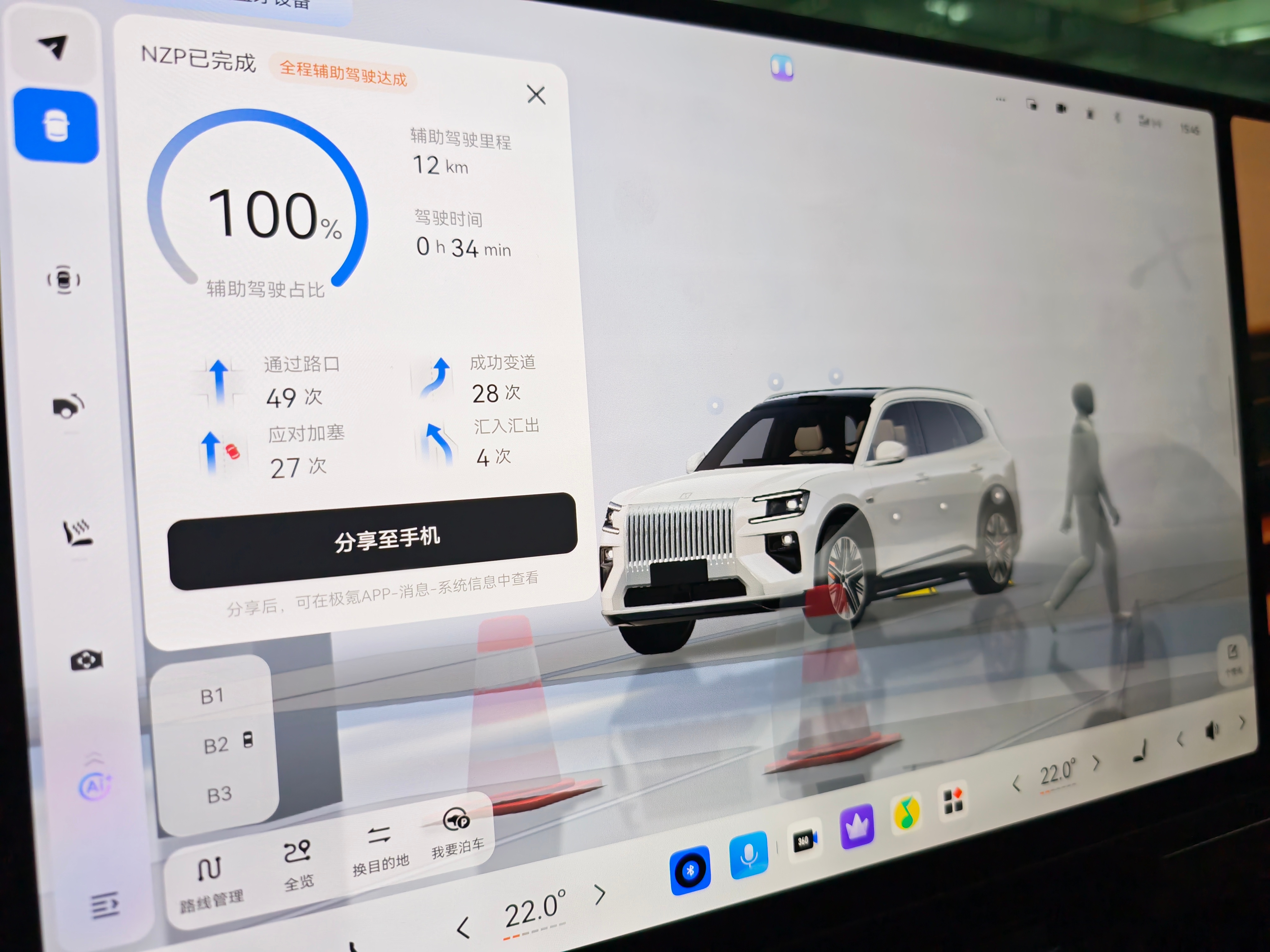 不足的地方,比如地库内流畅度一般,侧前方 45° 来向感知相较其他方向更保守,辅助驾驶可视化逻辑性还有优化空间。