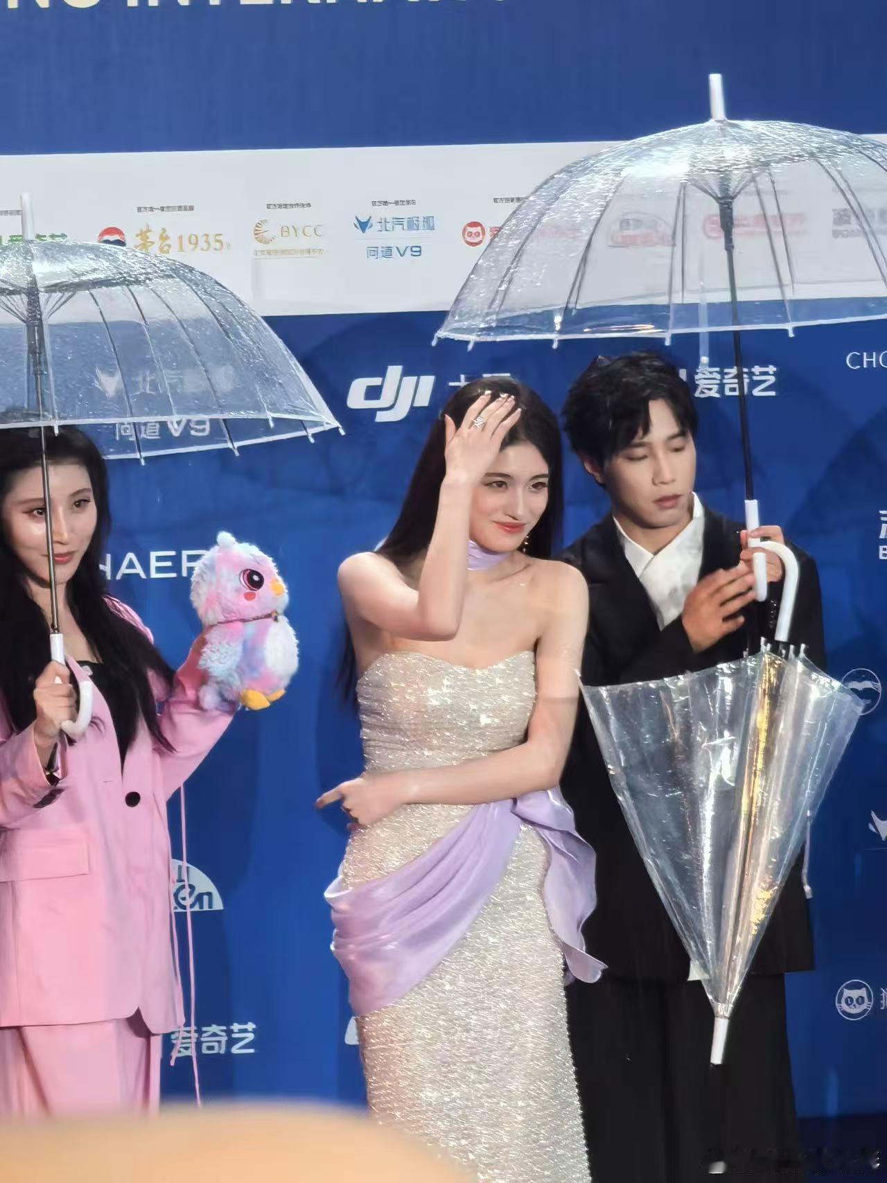 钟丽丽红毯被雨淋了谁懂啊钟丽丽红毯被雨淋的小意外,北影节红毯下雨,两个人挤一把伞
