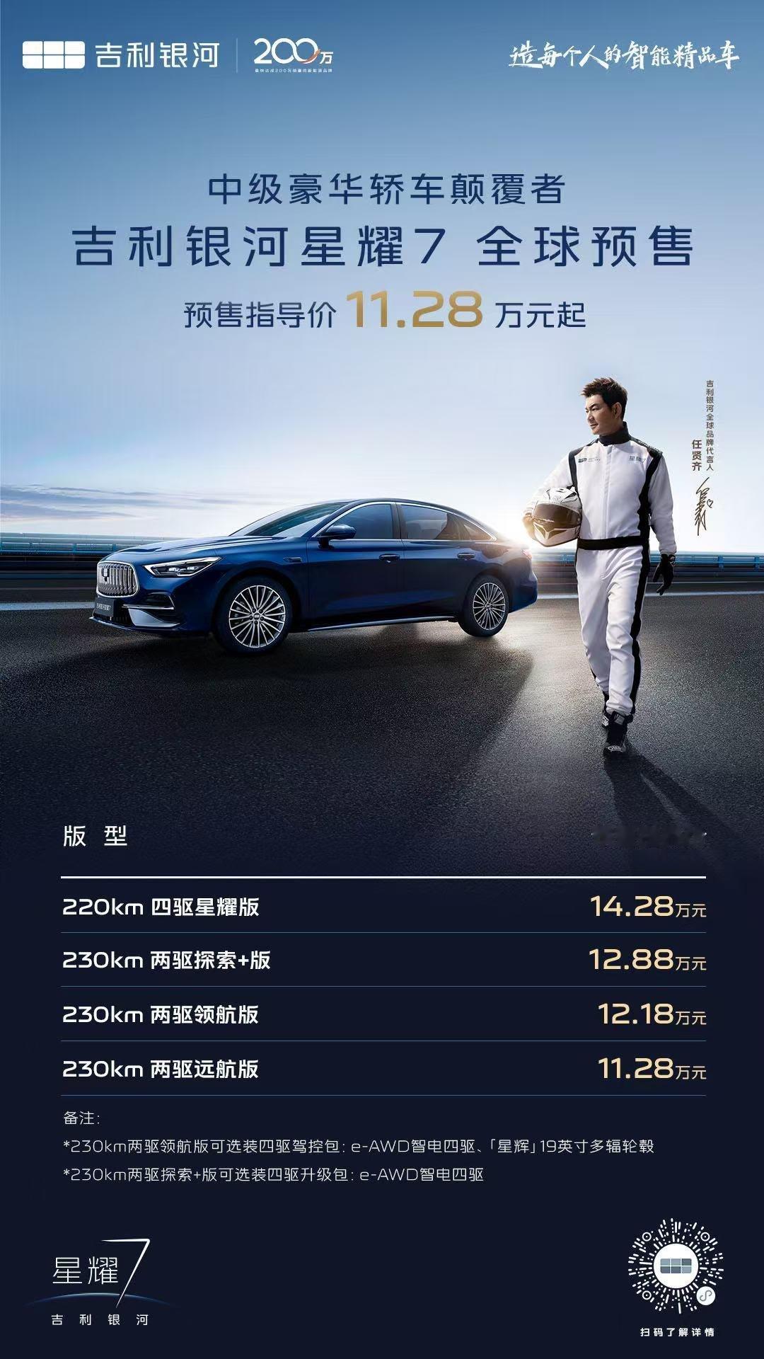 吉利银河星耀7 全球预售正式开启!预售指导价11.28万元起五大颠覆实力,重塑豪
