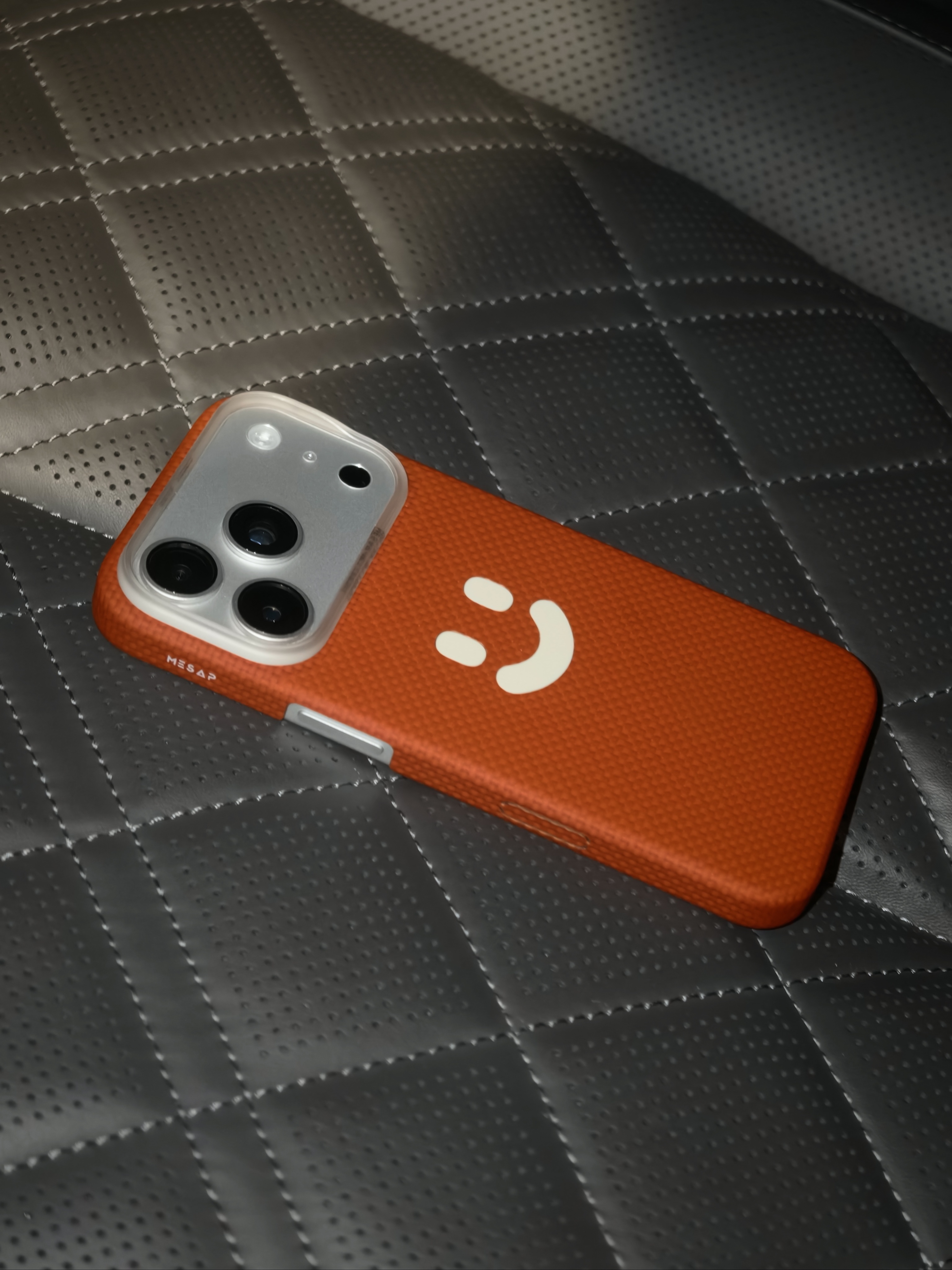 晚上好~起来买手机壳了这个橘色凯夫拉+镶嵌PPS笑脸瞄一眼都感觉阳光起来了