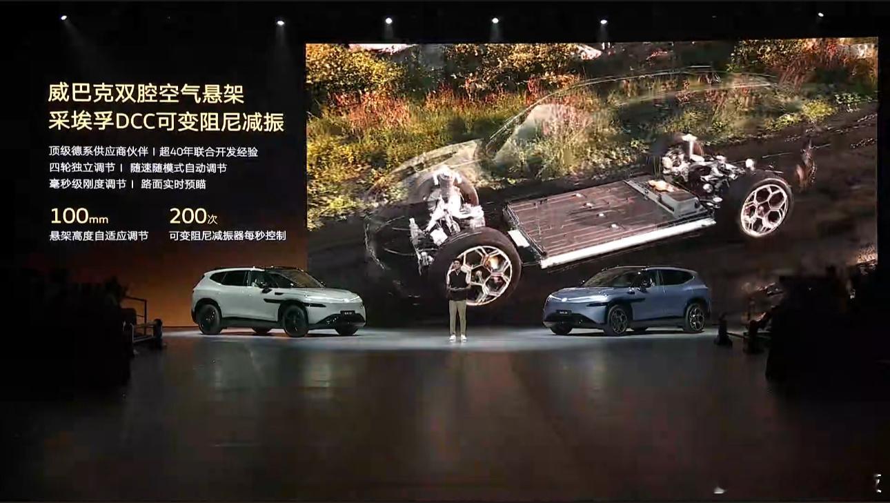 底盘是威巴克双腔空悬+采埃孚DCC,四轮独立调,每秒调200次,过坑过坎稳得一批。双电机四驱,370千瓦,零百4.9秒,配布雷博卡钳,35.3米刹停,连踩十脚都不带软。