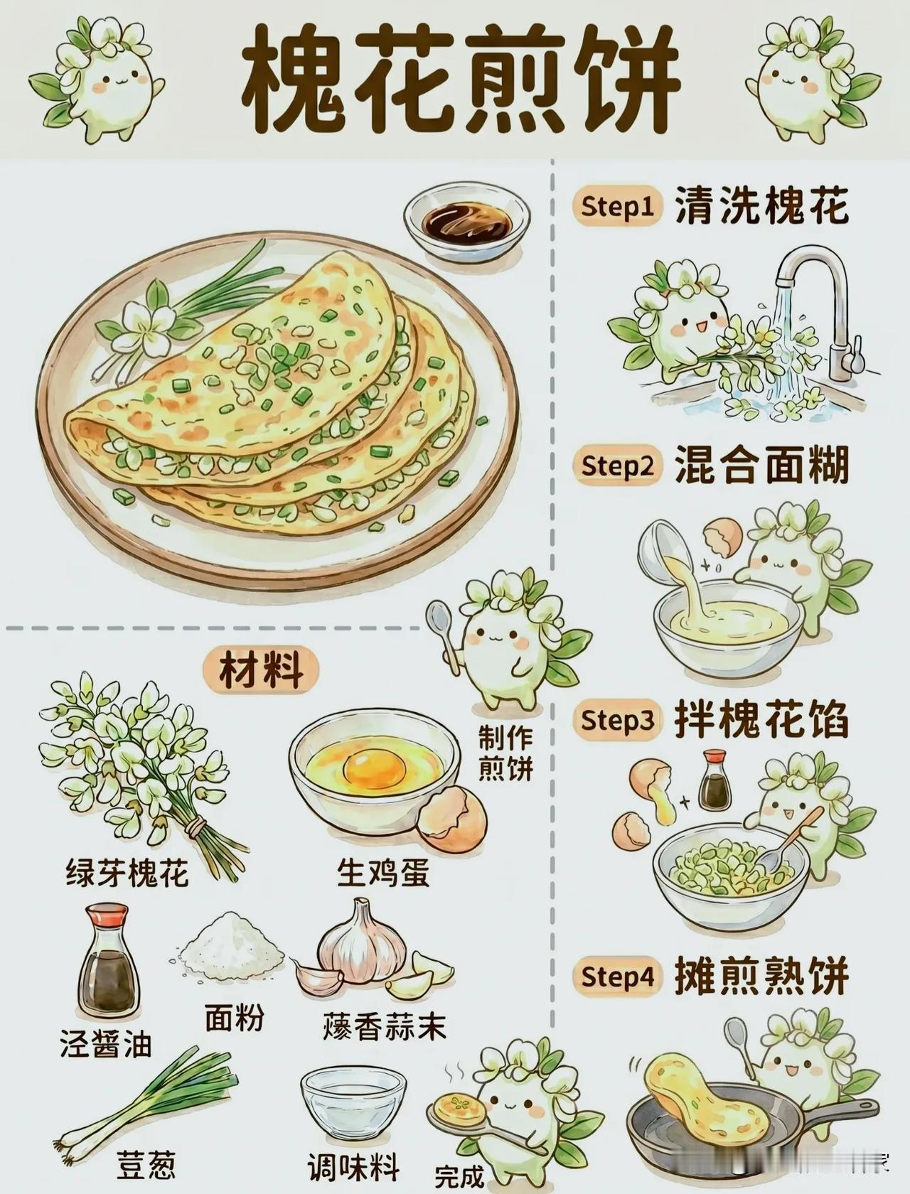 🫓 调成面糊摊成煎饼,咬一口外酥里软,槐花的香气直钻鼻子;