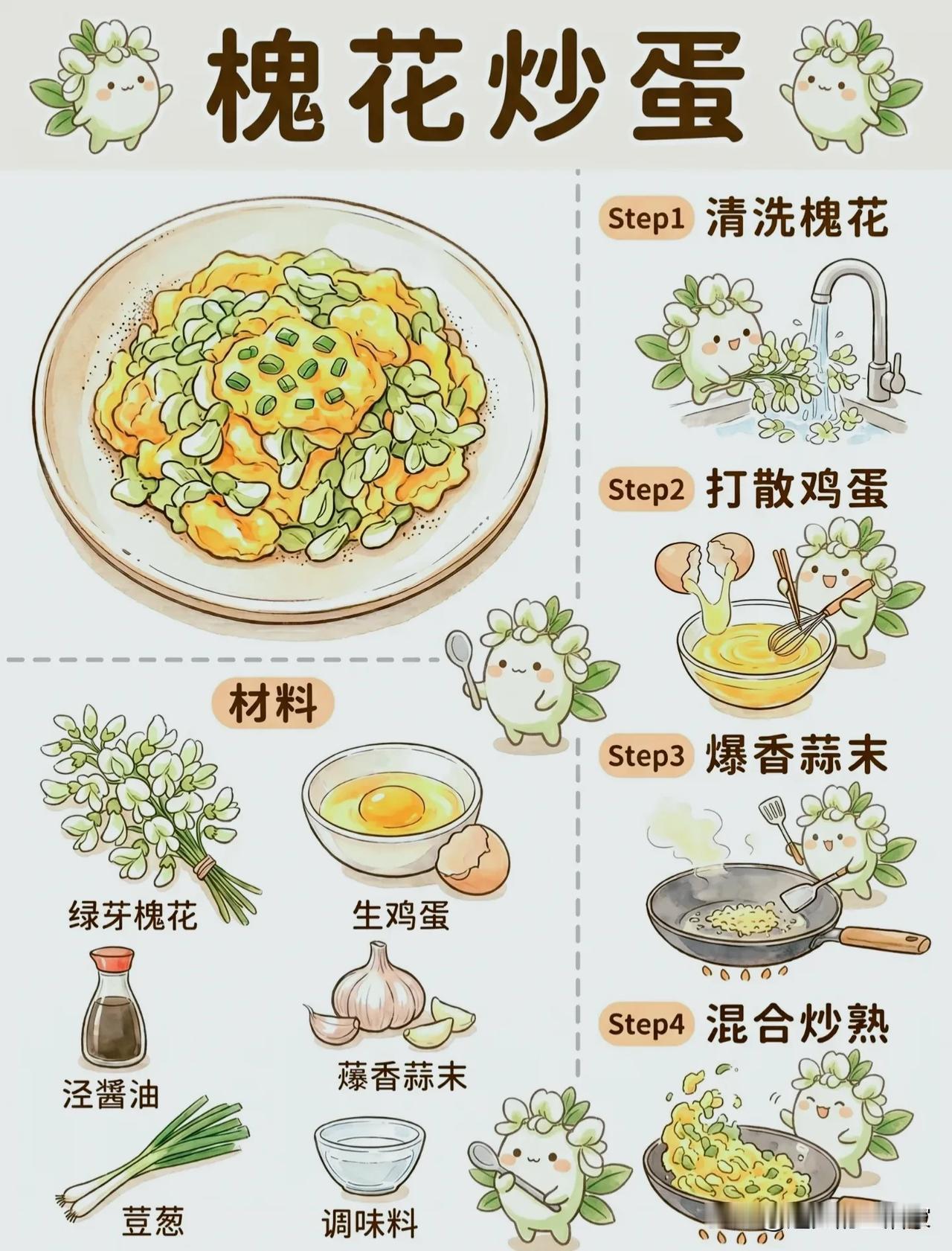 🍳 槐花炒蛋是永远的神,软嫩的鸡蛋裹着清甜的槐花,撒上一把葱花,香到能多吃两碗饭;