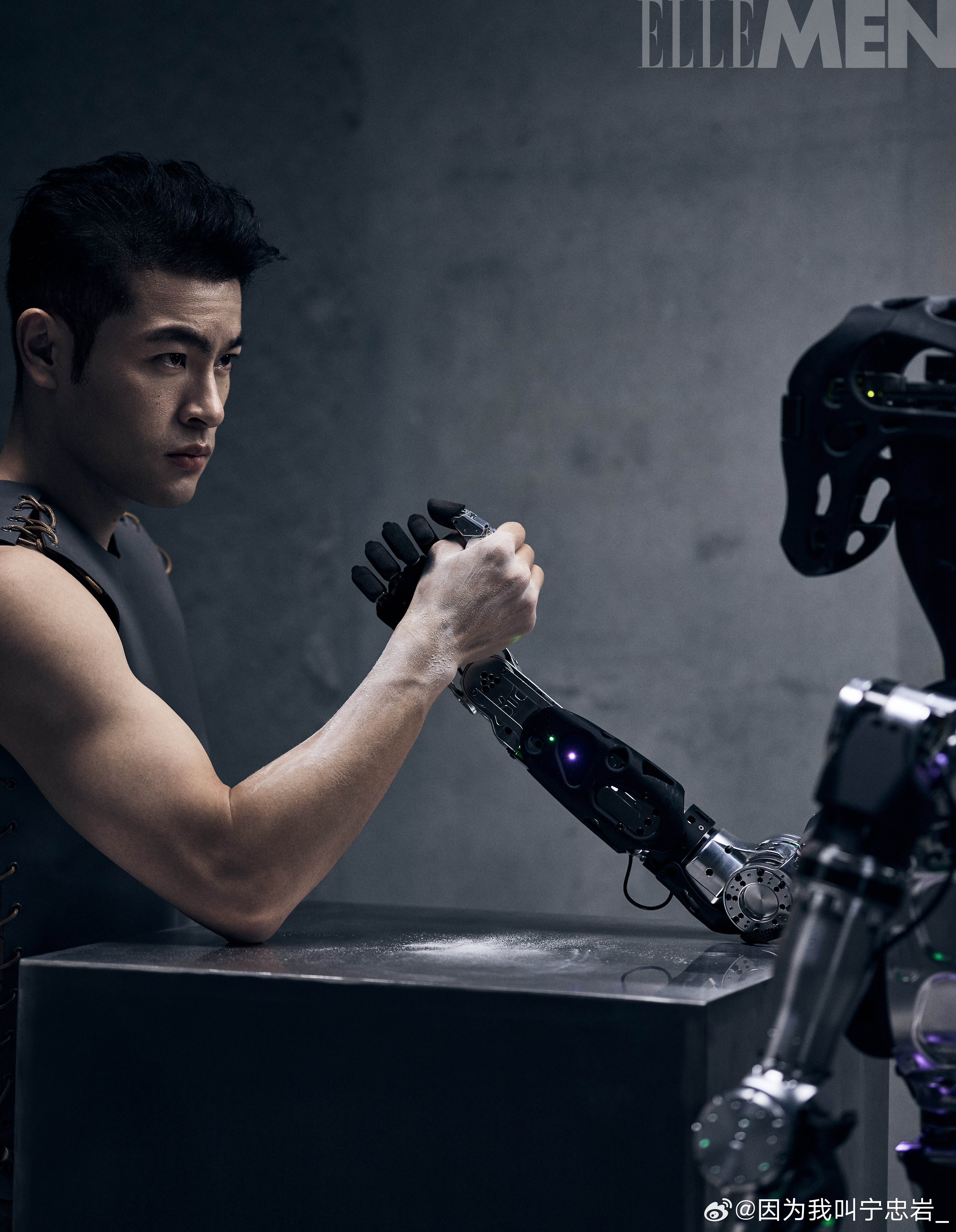 #宁忠岩和机器人掰手腕# 更新社媒,晒出自己最新的时尚大片“带着纪录与未来对话,