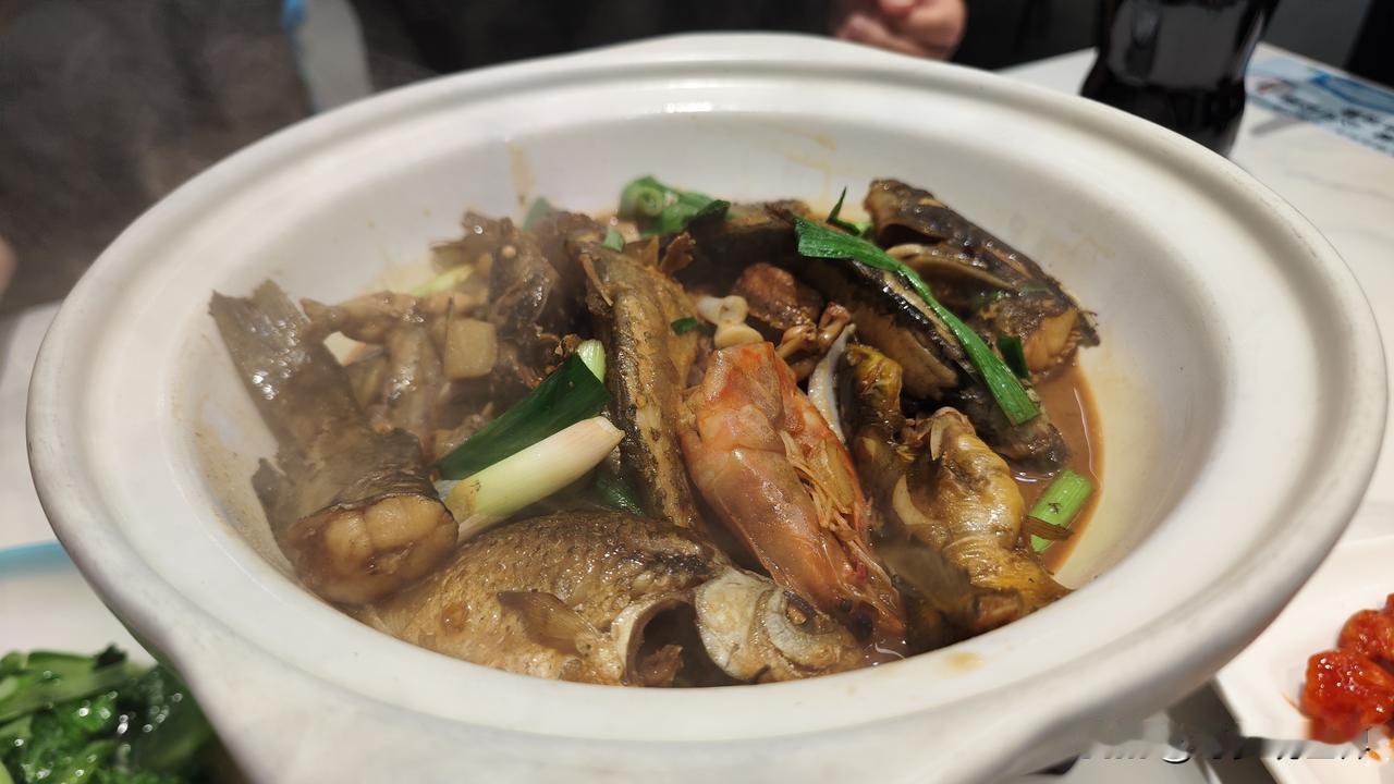招牌杂鱼煲直接封神,里面溪鱼品种多到数不过来,石斑、昂刺、小鲫鱼样样齐全,都是本地溪涧现捞,活杀现烧,汤汁浓醇入味,鱼肉嫩到一抿就脱骨,鲜得连汤都想喝光,爱吃鱼的朋友闭眼冲。