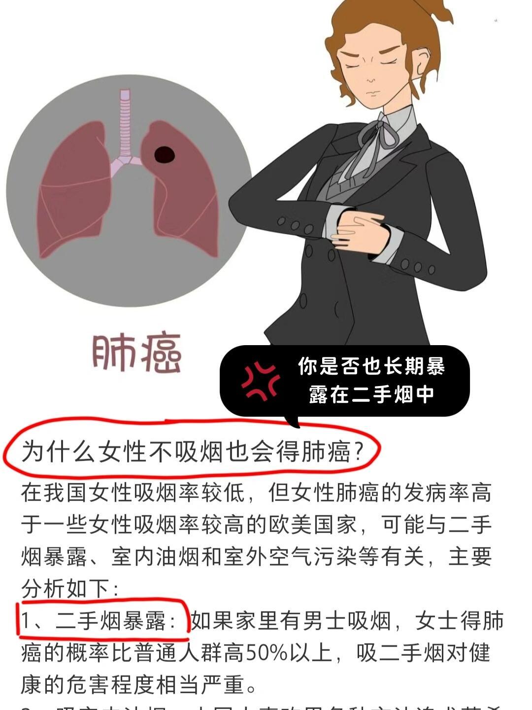 最新数据显示,中国约有3.08亿不吸烟女性,其中超过70%在日常生活中暴露于二手烟环境。这意味着约2.15亿女性每天都在被迫吸入烟草烟雾。二手烟含有至少69种已知致癌物,长期暴露可使女性肺癌风险增加20%-30%,冠心病风险增加25%-30%。值得注意的是,肺癌已成为中国女性第一大癌症,而二手烟暴露被指为主要危险因素之一。暴露场景集中在家庭、工作场所和公共场所,尤其在餐厅、网吧等场所问题突出。尽管多地已出台控烟法规,但执行力度不均,且电子烟监管存在空白。专家呼吁,全社会应共同营造无烟环境,保护不吸烟者的健康权益。