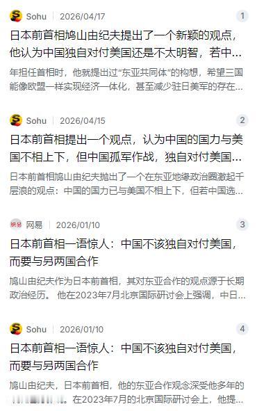 日本前首相鸠山由纪夫提出了一个新颖的观点,他认为中国的国力与美国不相上下,但如果中国孤军作战,独自对付美国还是不太明智,若是中日韩联起手来,美国大概率要落入下风,可话虽这样说,但日韩大概率不会轻易转变立场,尤其是日本。目前日本与中国的关系很微妙,尤其是高市早苗访美回日本后,日本政府几乎展现出了比之前更加强硬的对华态度。