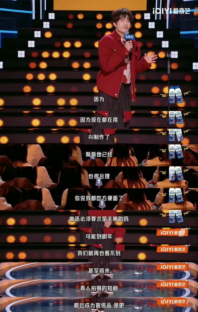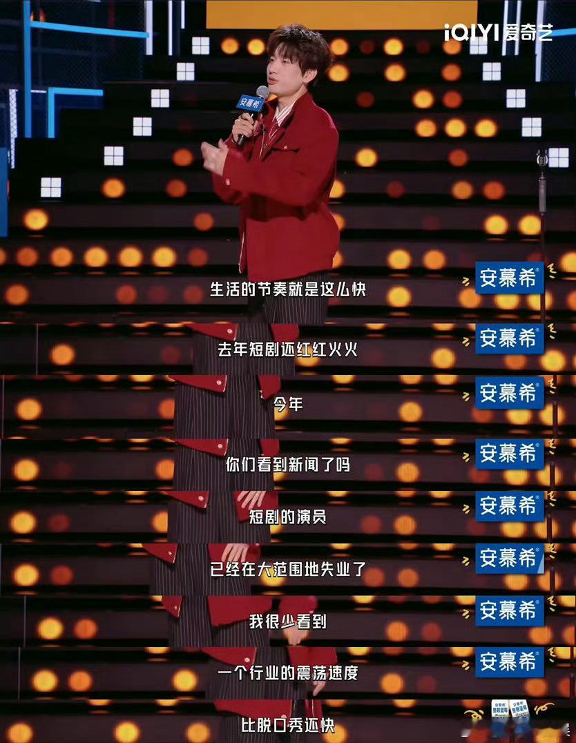 短剧行业的动荡比脱口秀还快庞博在今夜喜友秀犀利吐槽,AI崛起让短剧演员大面积失业,行业动荡速度远超脱口秀,这个比喻精准又真实,瞬间戳中行业现状。