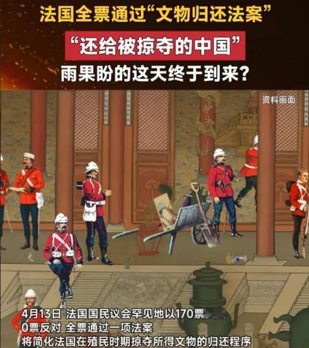 法国要归还中国文物,英国、日本能做到吗?雨果说的话在法国实现了(他说总有一天,法兰西能脱胎换骨,将这不义之财归还被抢掠的中国)。在英国就很难,英国如果要归还掠夺的文物,大英博物馆就要空了,日本更难,他们从来没有反思过侵略行为,还把掠夺的文物当“战利品”。