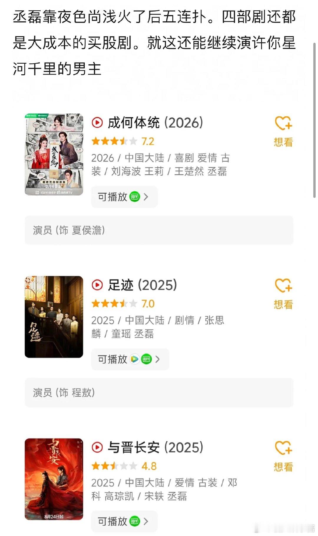 丞磊是如何做到连扑了资本买股的5部后,还能继续演男主的?