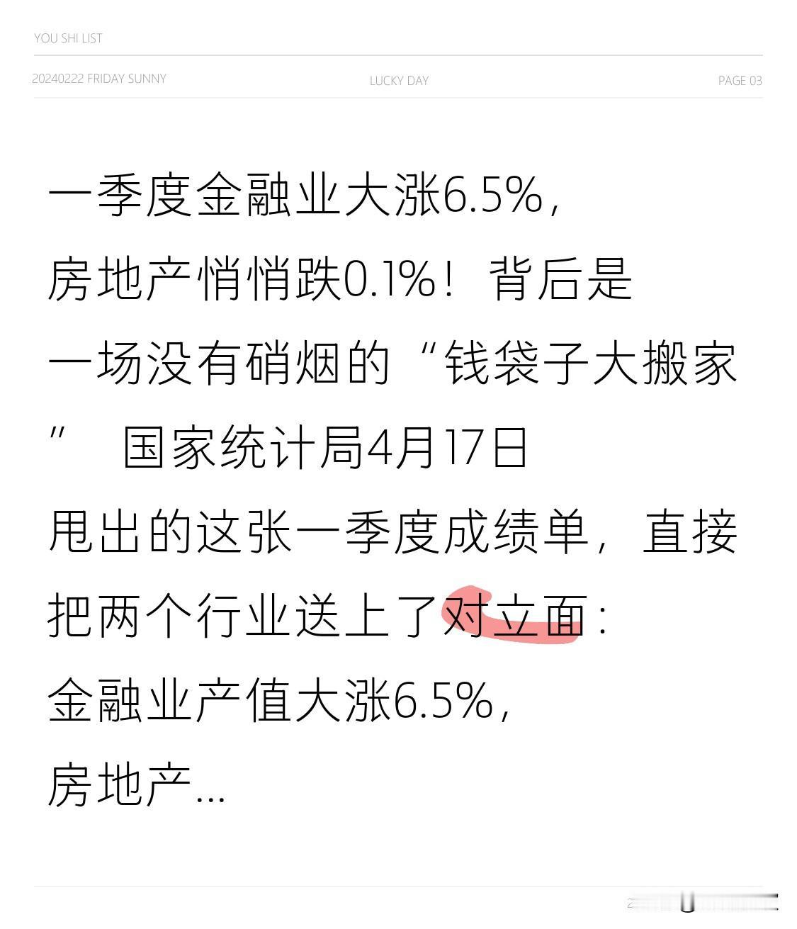一季度金融业大涨6.5%,房地产悄悄跌0.1%!背后是一场没有硝烟的“钱袋子大搬家”