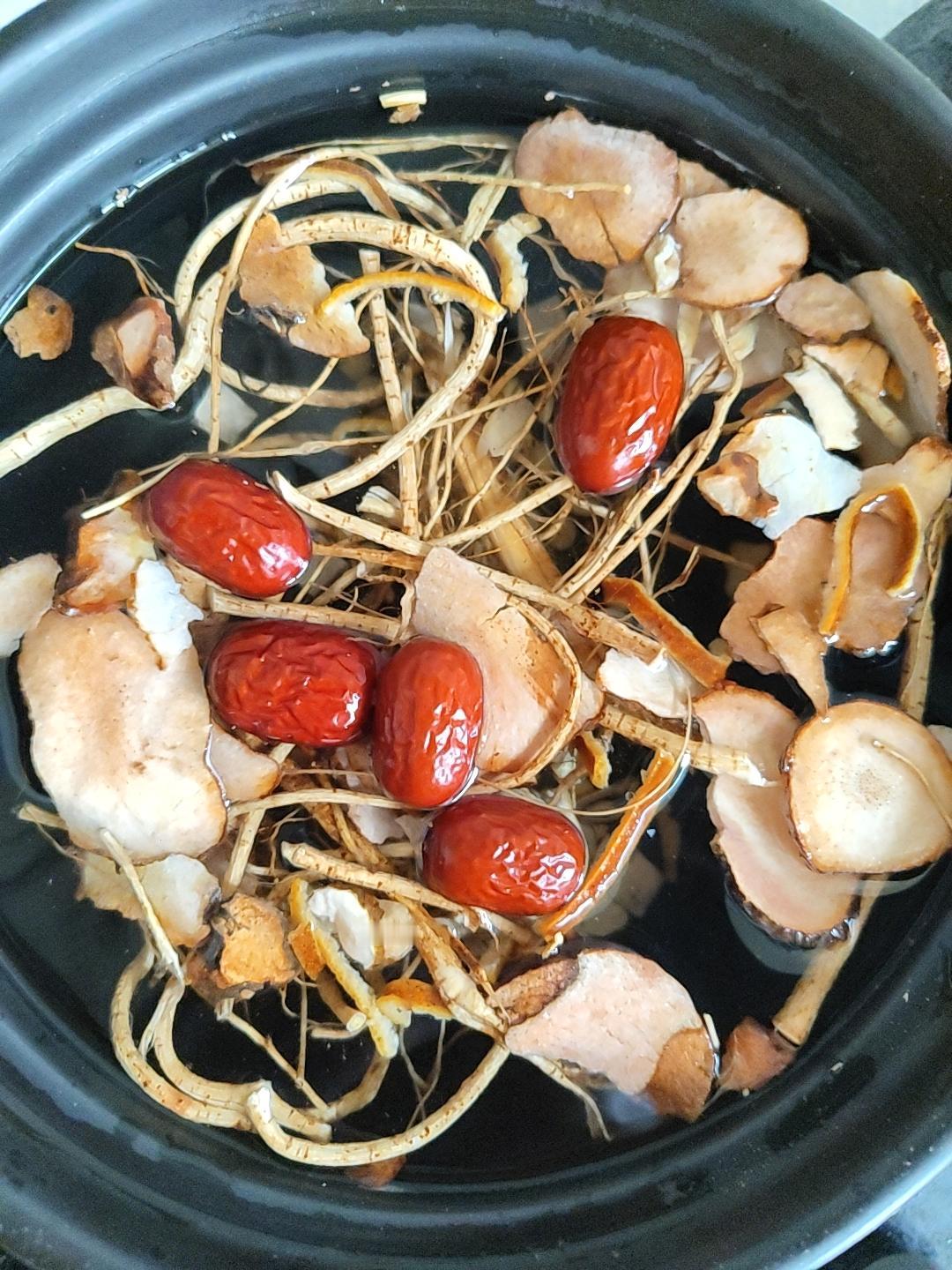 最近莫式鸡煲好火,一直想试试家庭版的自制鸡煲,正好今天有空,下午出去买了药材和鸡回来,刚刚把药材洗干净放砂锅中,先用水浸泡药材一个小时,等一个小时后再煮药材(大火烧开,小火慢炖一个小时),最后再放鸡肉,焖煮20分钟~~