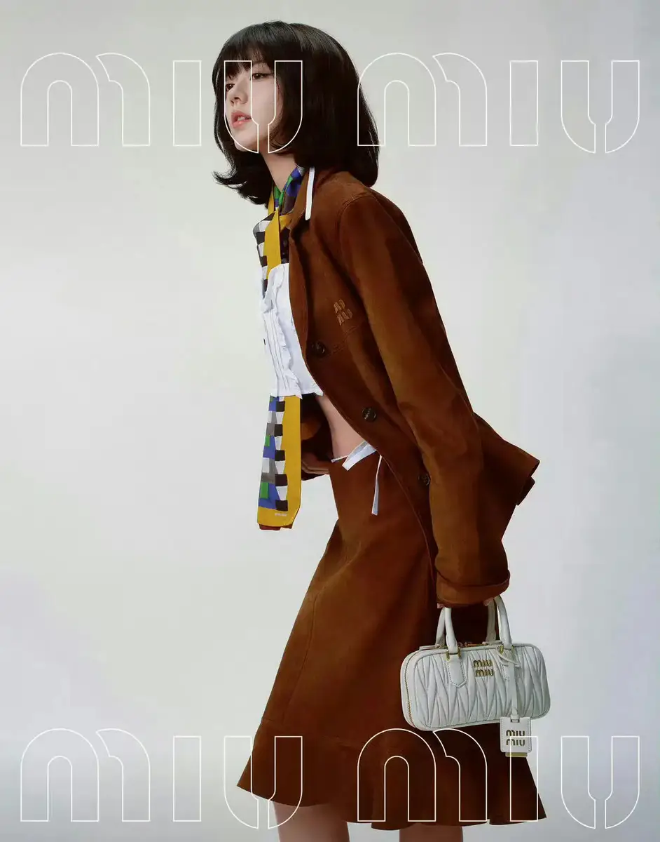 赵今麦短发造型甜酷吸睛 穿复古棕褐套装俏皮灵动