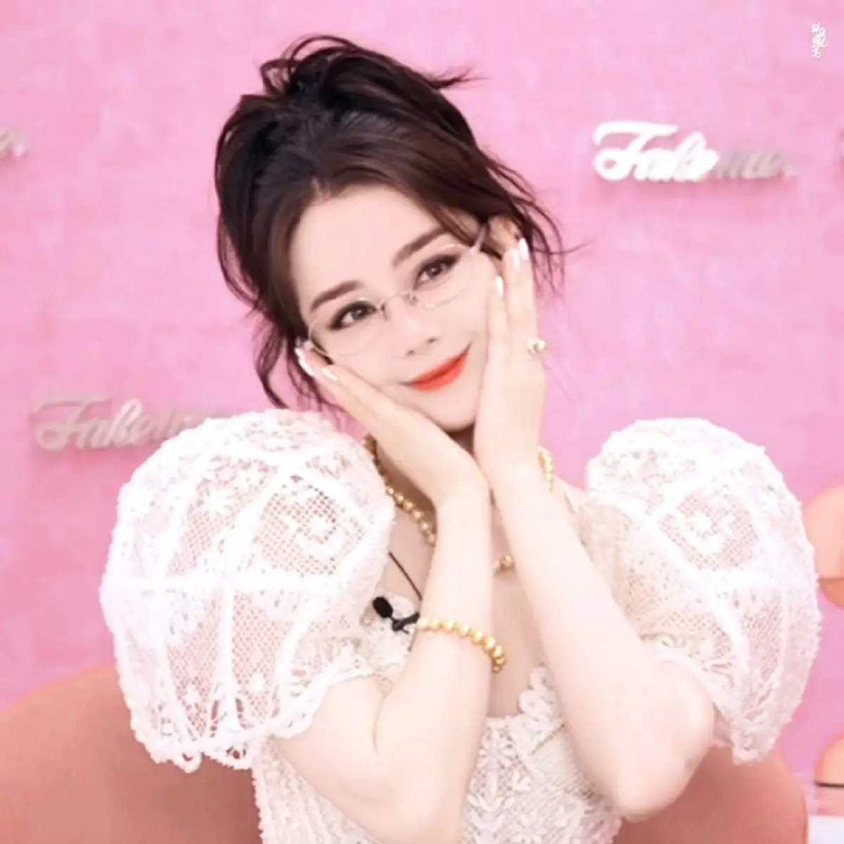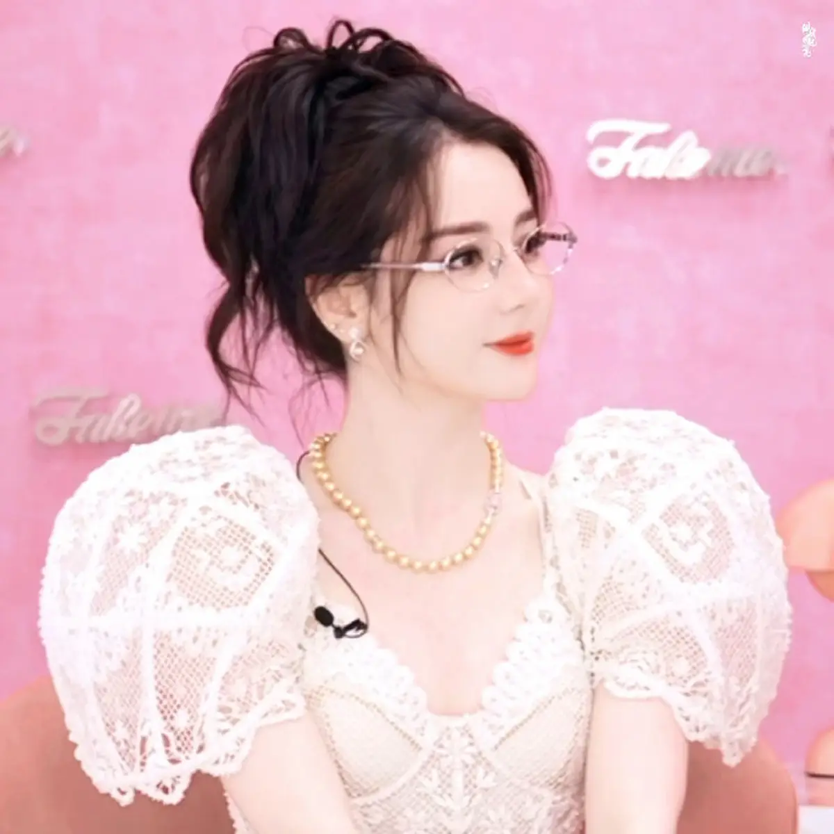 迪丽热巴穿白蕾丝裙搭配珍珠项链 托腮甜笑软萌可爱