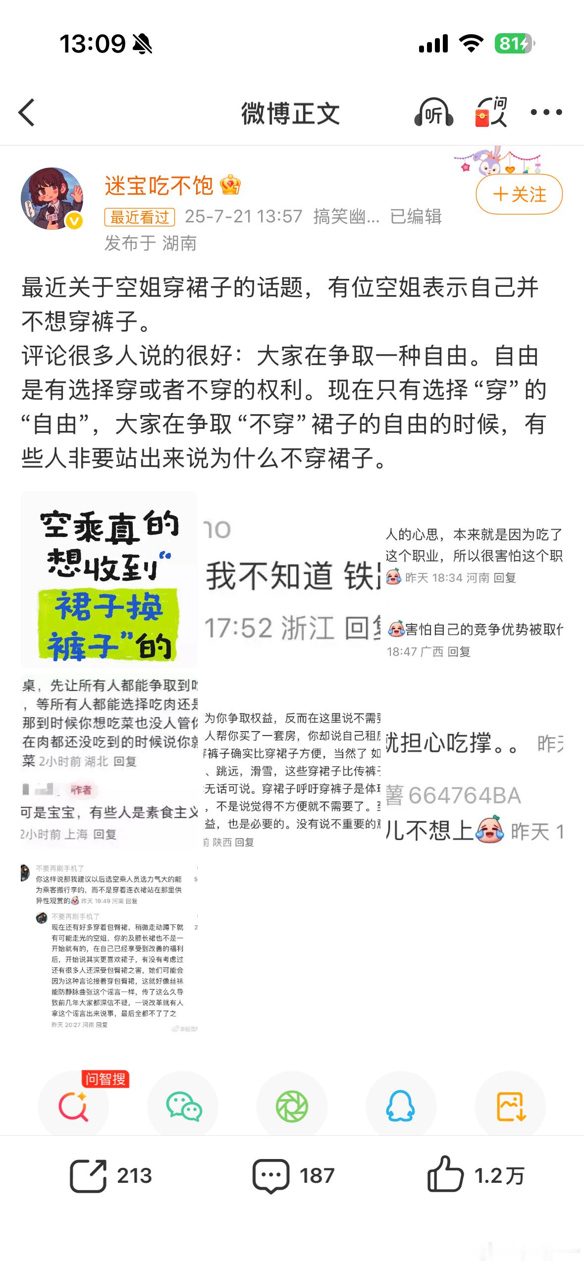 看到北影节主持人淋雨裙子变色,一下子想到空姐短裙热搜。穿搭大多不是自己能定,都是行业仪式感、镜头审美在要求。