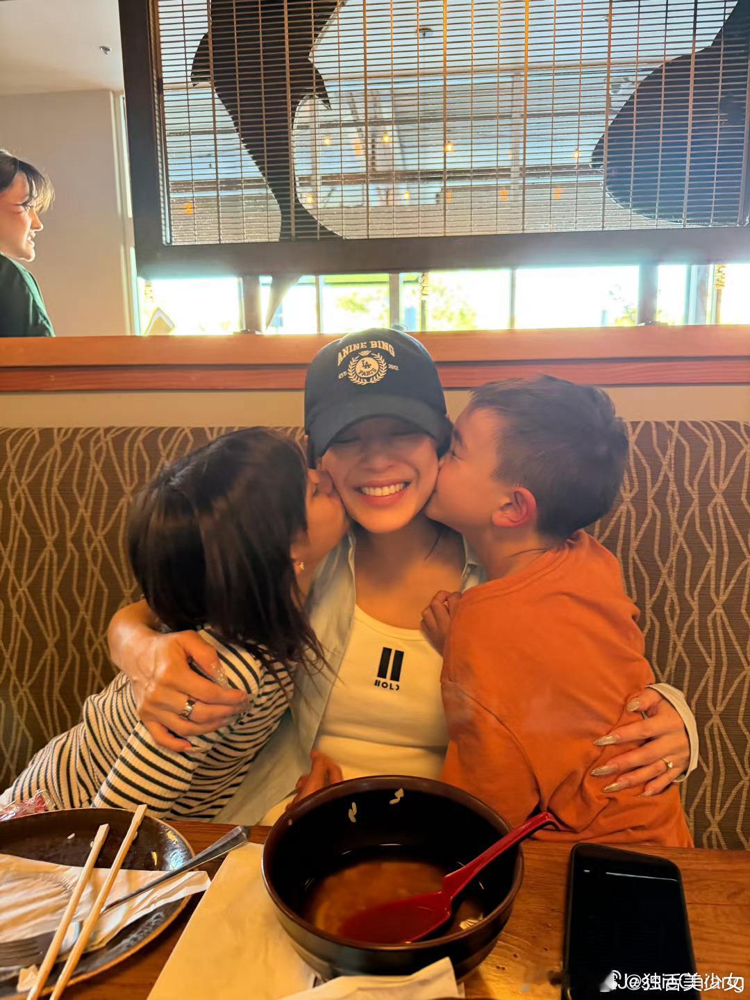 江语晨带孩子们看浪姐江语晨更新社交动态,公开和两个孩子的合照,记录一家人共同收看