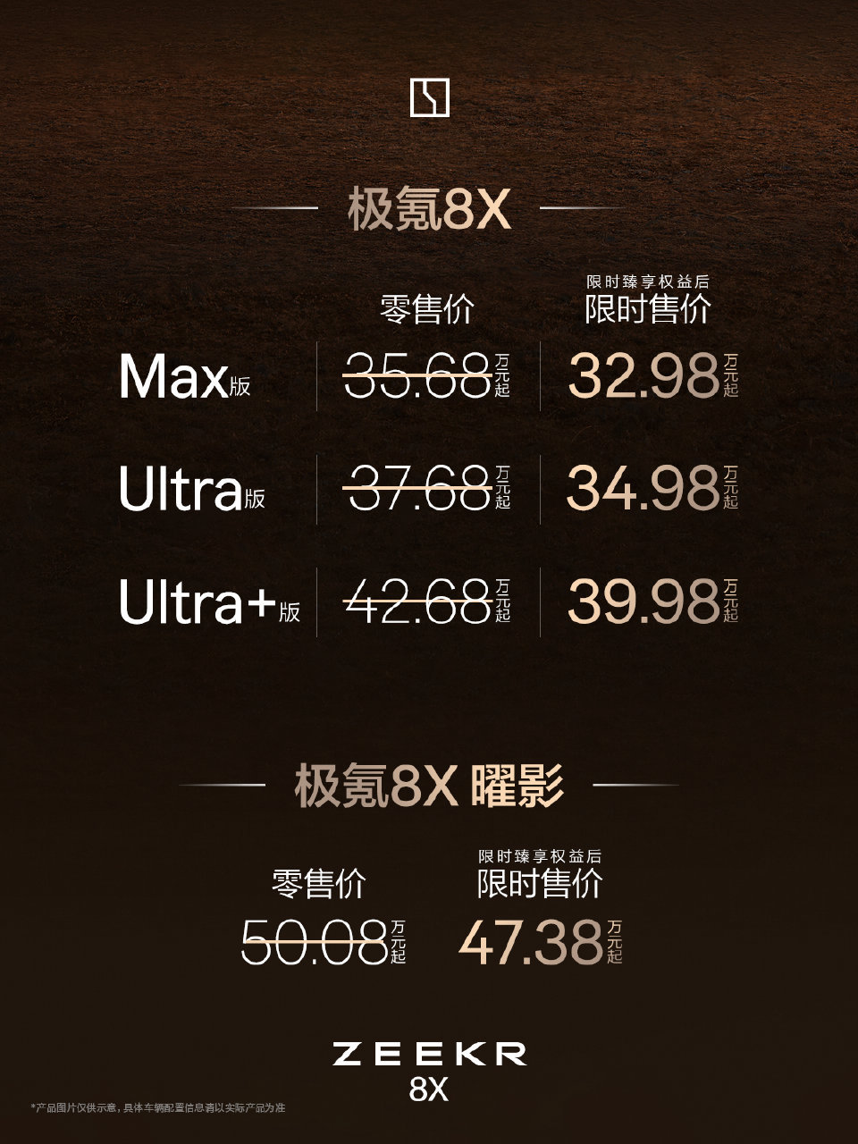 极氪8X上市限时售价32.98万元起,曜影版47.38万元