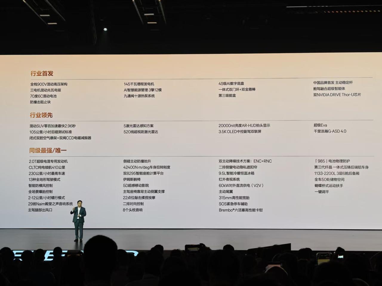 - 全系标配全栈 900V 高压架构和 6C 超快充,综合续航超 1400 公里