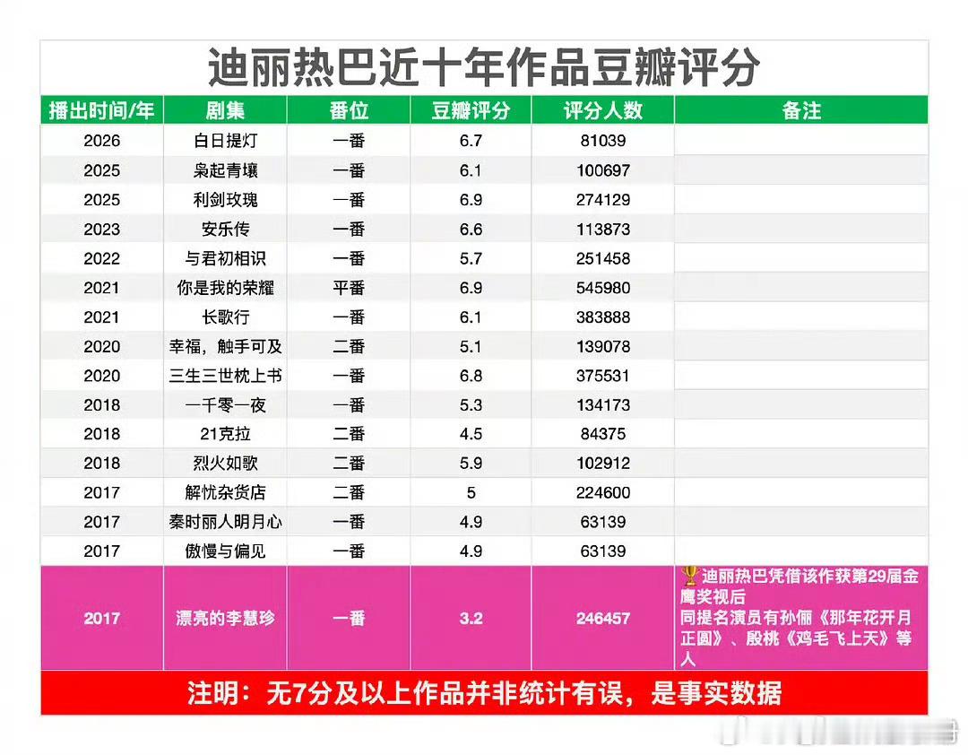 迪丽热巴近十年作品豆瓣评分白日提灯豆瓣6.7