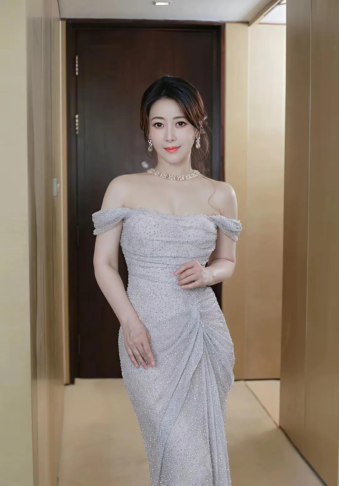 谁能拒绝陈紫函的高定礼服!💯 浅灰满钻抹胸裙完美展现优越身材,优雅又性感。这么