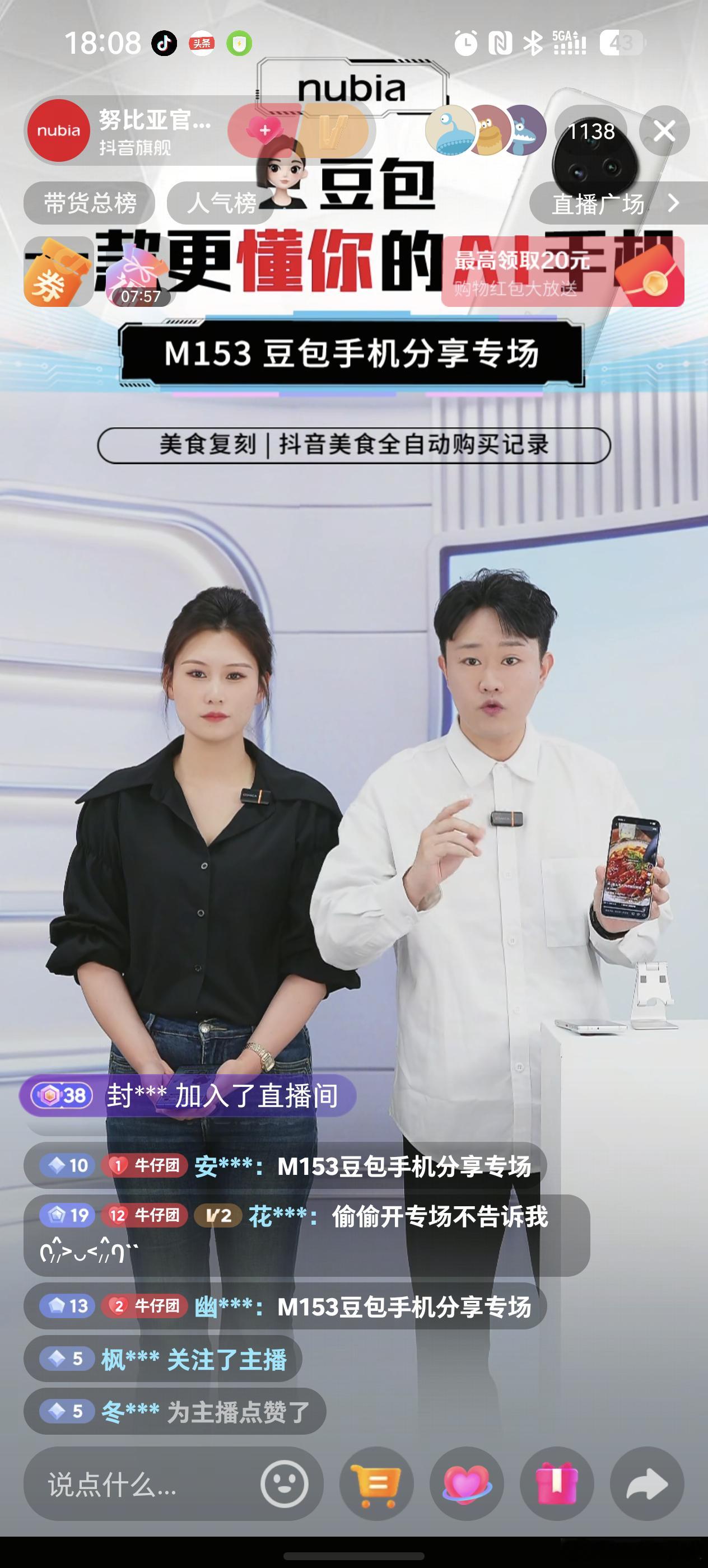 哈哈,刚在努比亚直播间蹲了一波,发现官方在搞“M153豆包手机分享专场”!重点是豆包手机是要成精啊?连抖音美食都能全自动下单了——怕不是半夜我们只能负责看剧,它负责帮我们点单了……那我们还咋瘦身哈!不过话说这豆包关注度是真的高,大家都在蹲,有点期待新品了,别光让我们钱包瘦啊😂