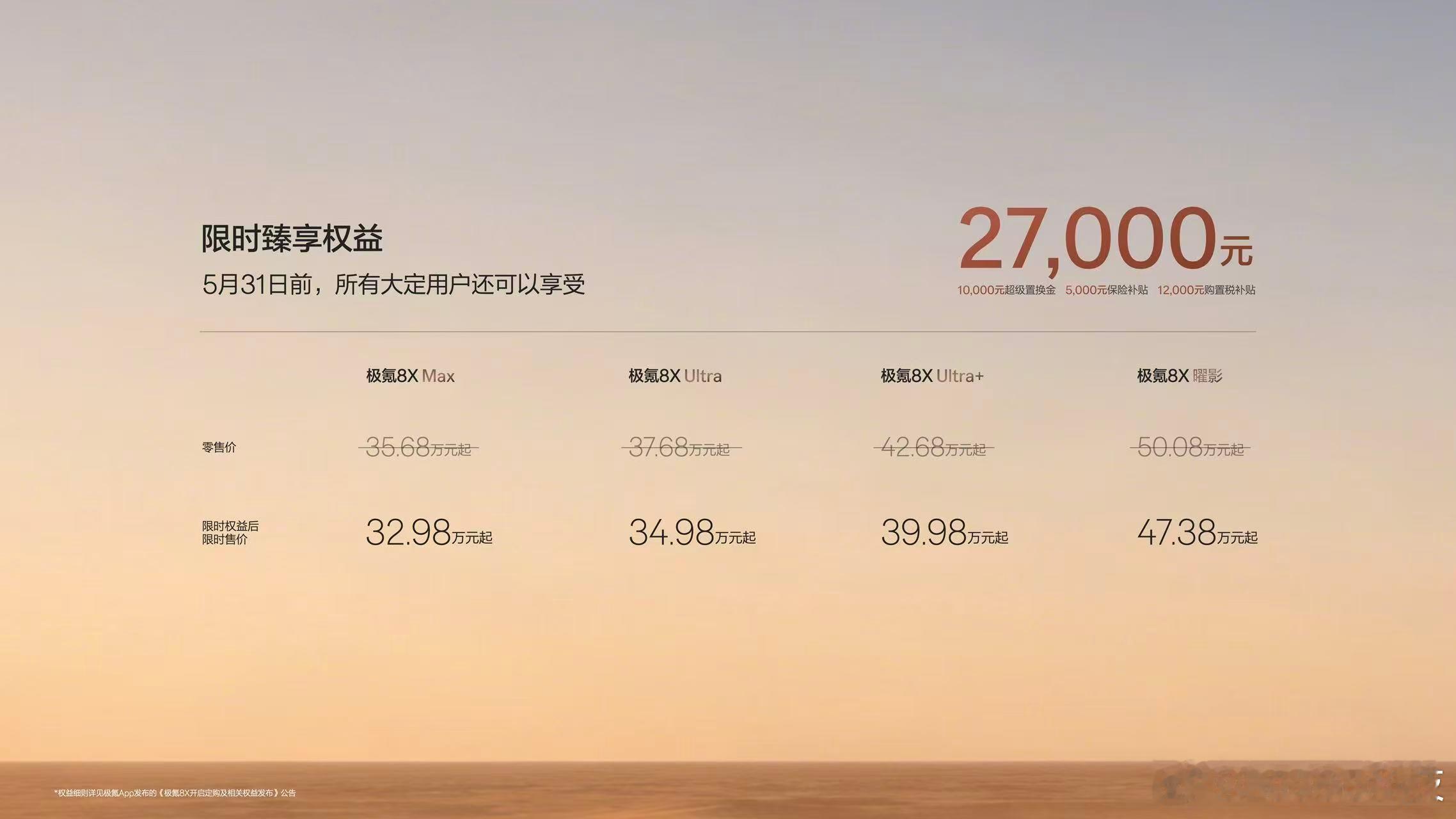 极氪8X 上市权益价32.98万元起!大家觉得这价格香不香哈?!重点,极氪品牌新车首任车主增换购!连续5年赠送1,000度/每年免费充电额度新公路之王极氪8X正式上市