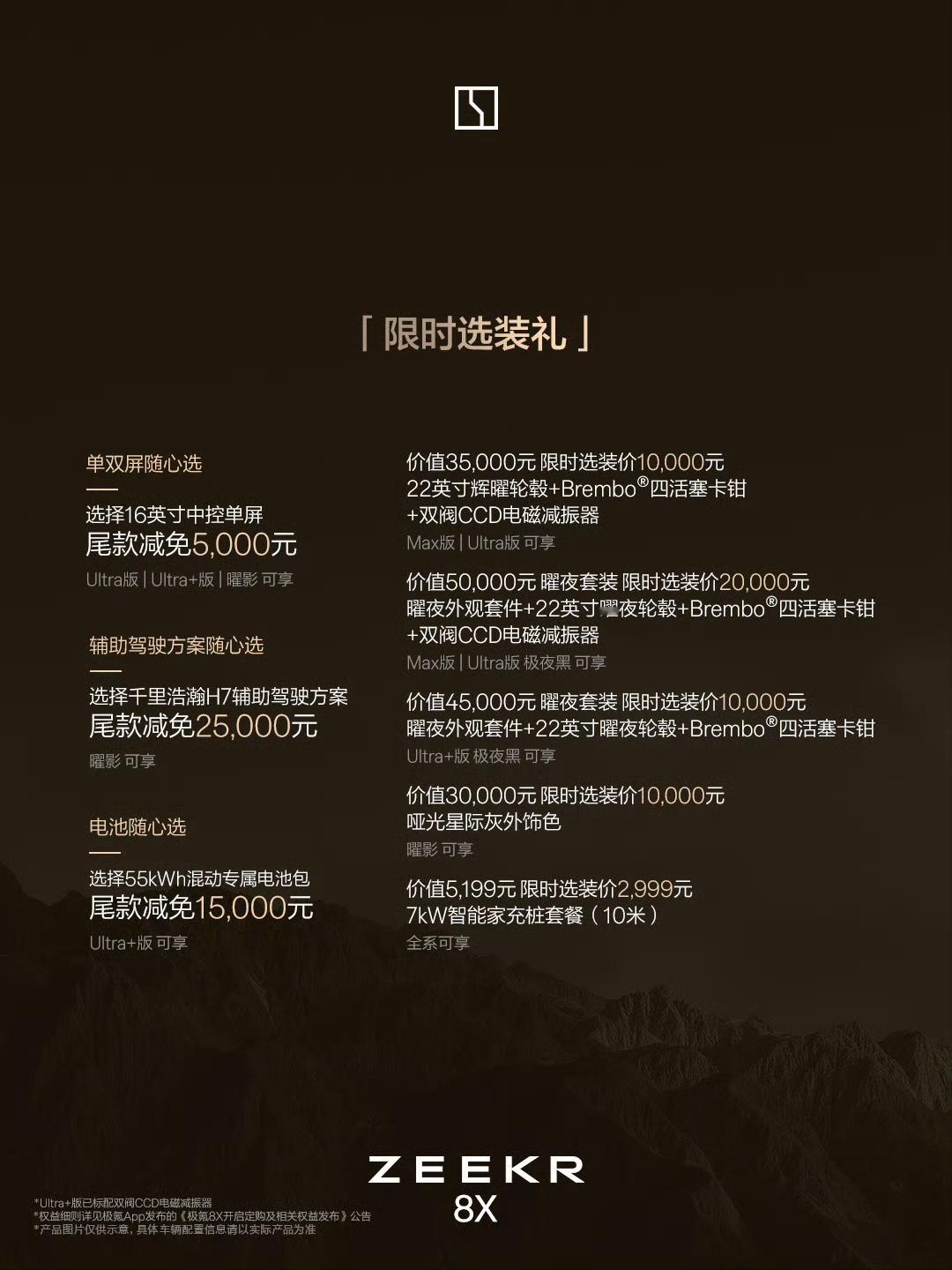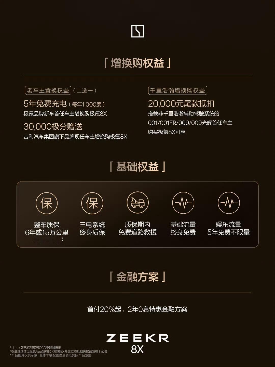 极氪8X上市,限时权益后价格32.98-39.98万 曜影版47.38万起。