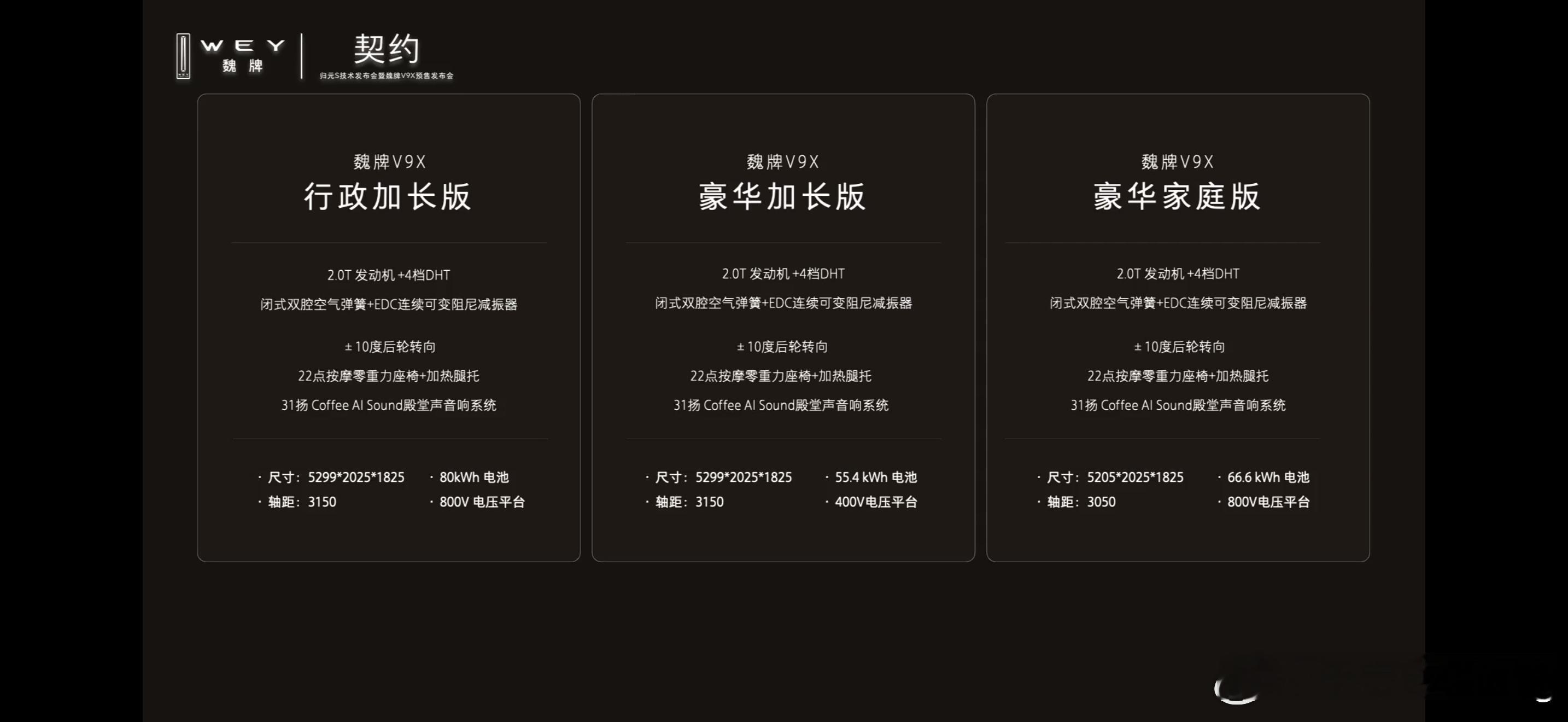魏牌V9X 价格出来了 3年免息80度电池➕4档DHT