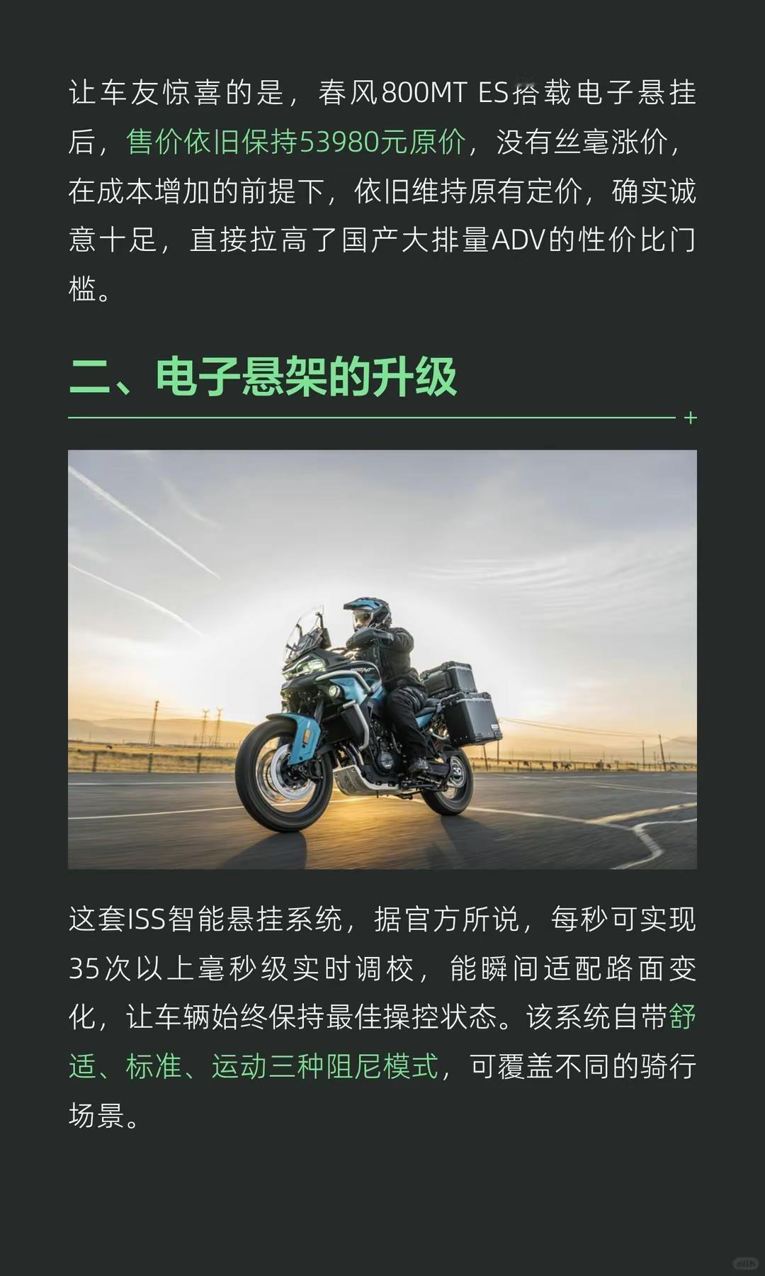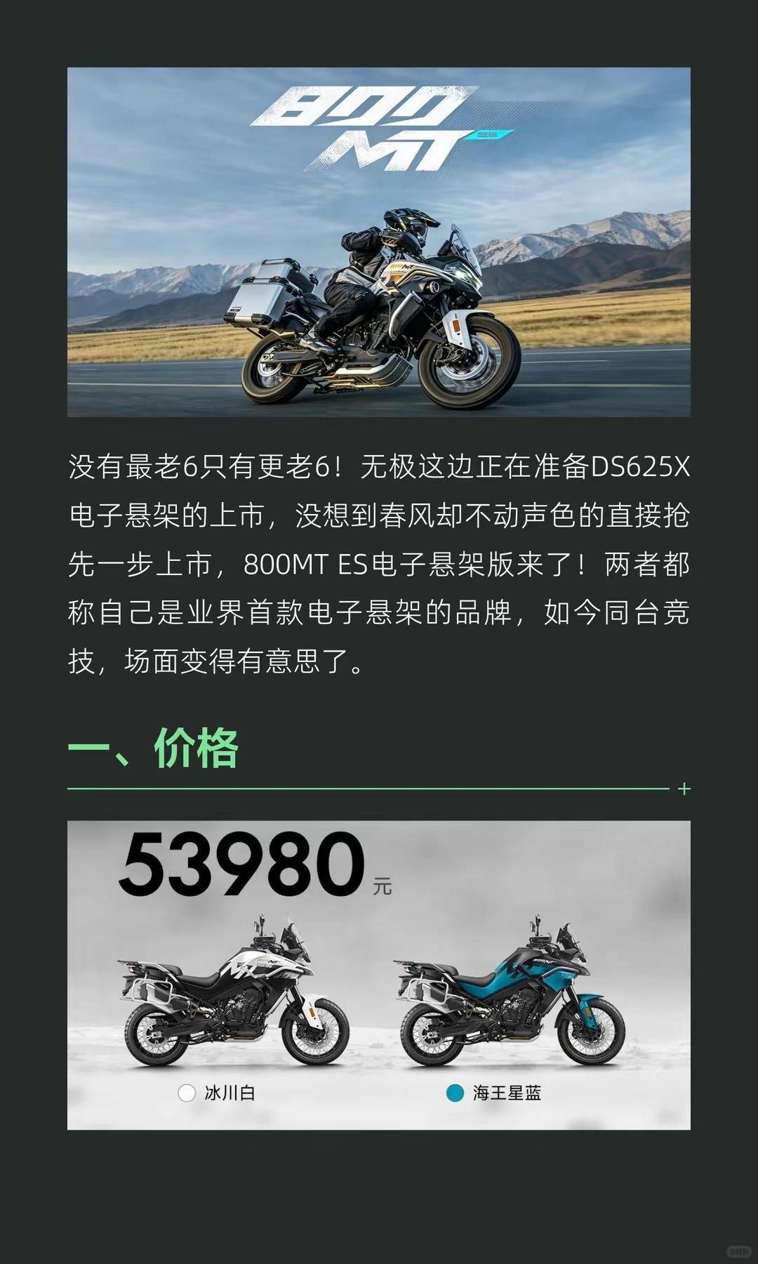 5.4万起,春风800MT ES电子悬挂。悄无声息放大招!春风800MT ES电子悬挂版上市,53980元原价硬刚无极春风动力 春风800mtes 新车上市 电子减震