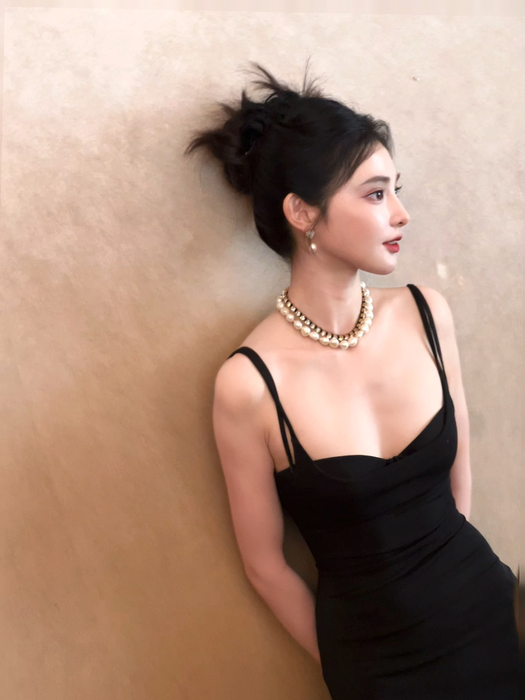 彭小苒,一组好看的黑色抹胸吊带裙美腿造。彭小苒