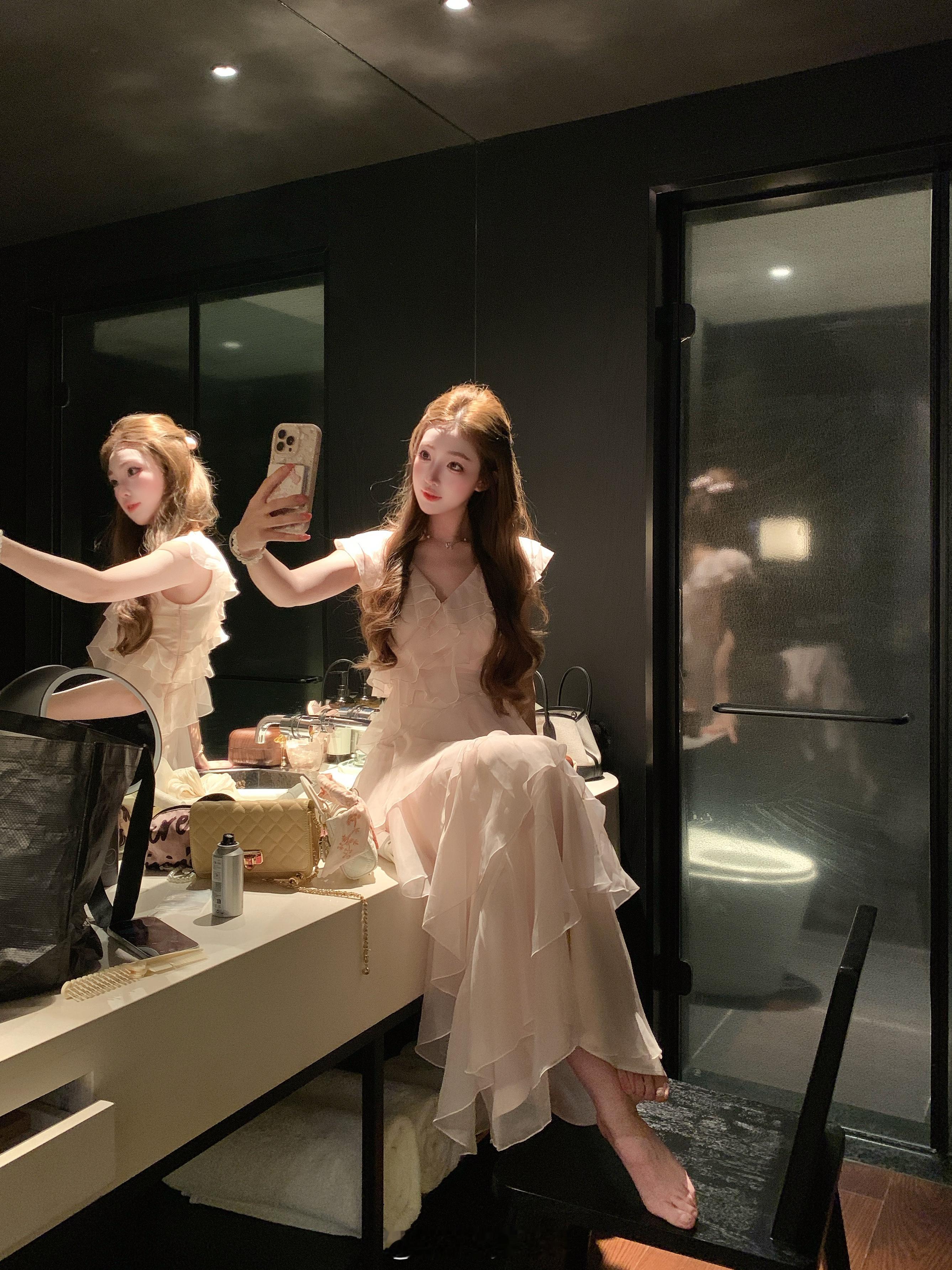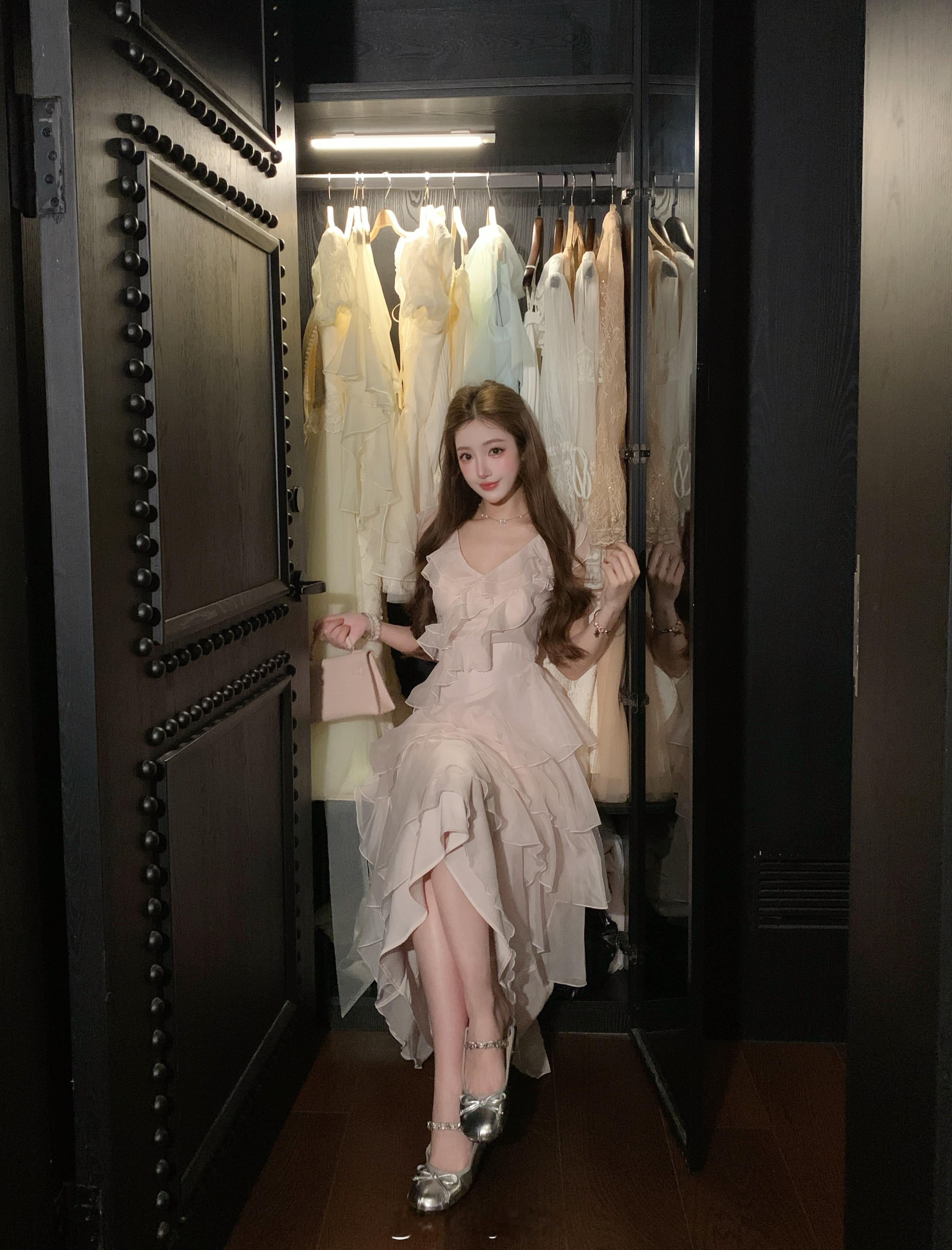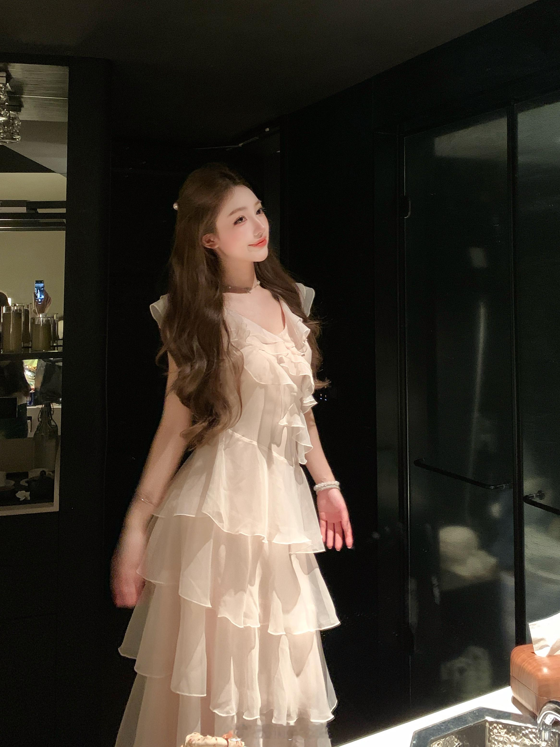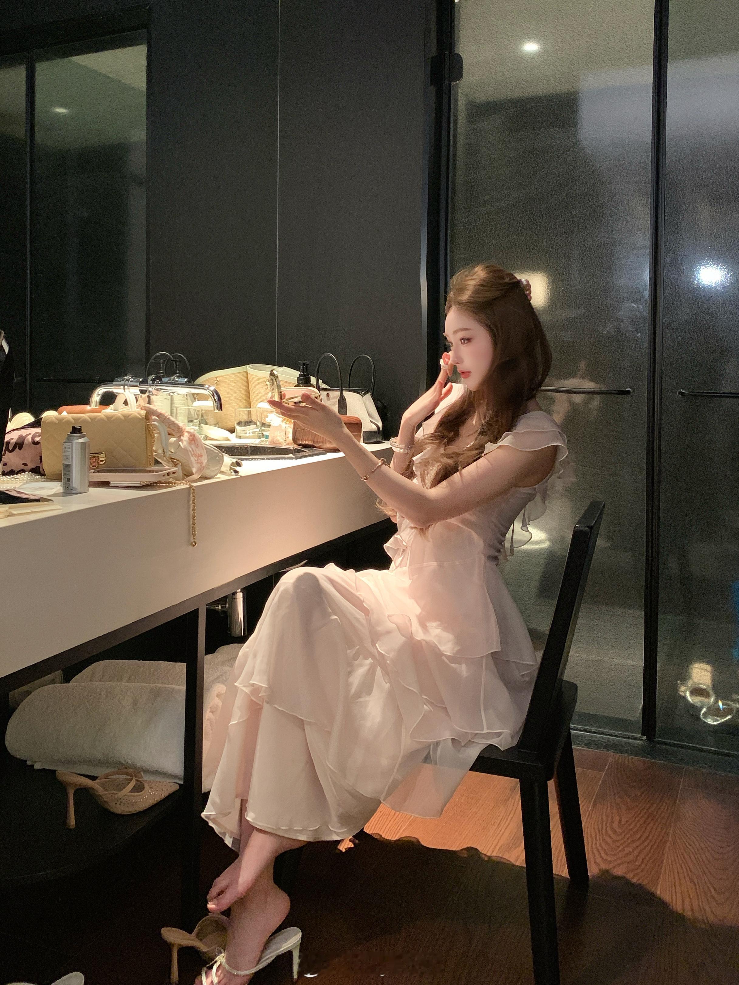 张纯烨高挑长腿美学穿搭,裙摆轻盈,纤纤而立。张纯烨