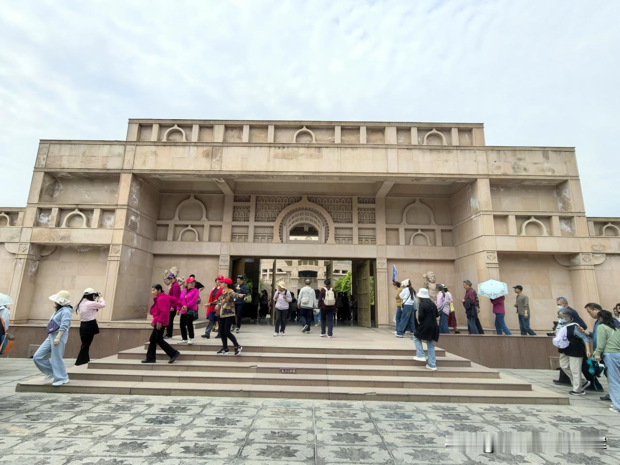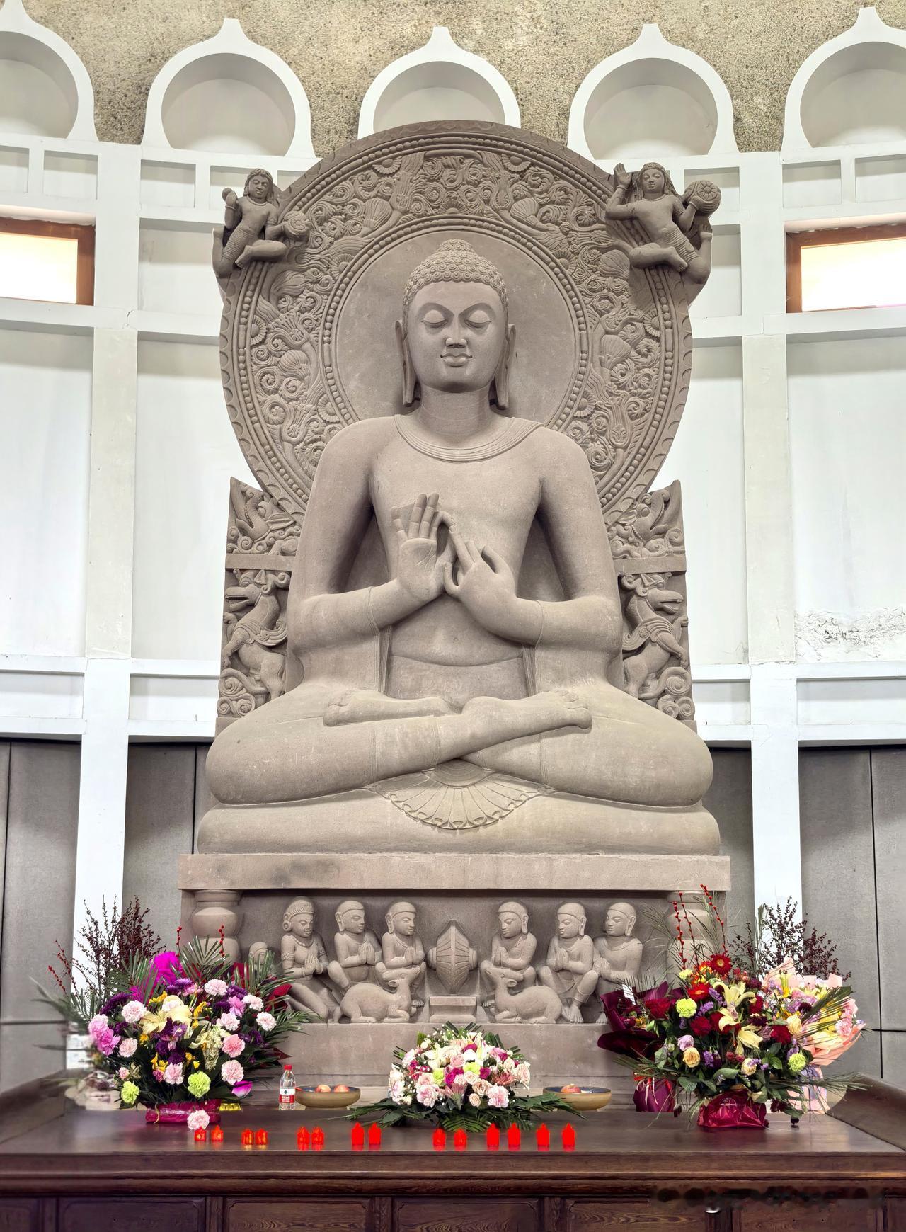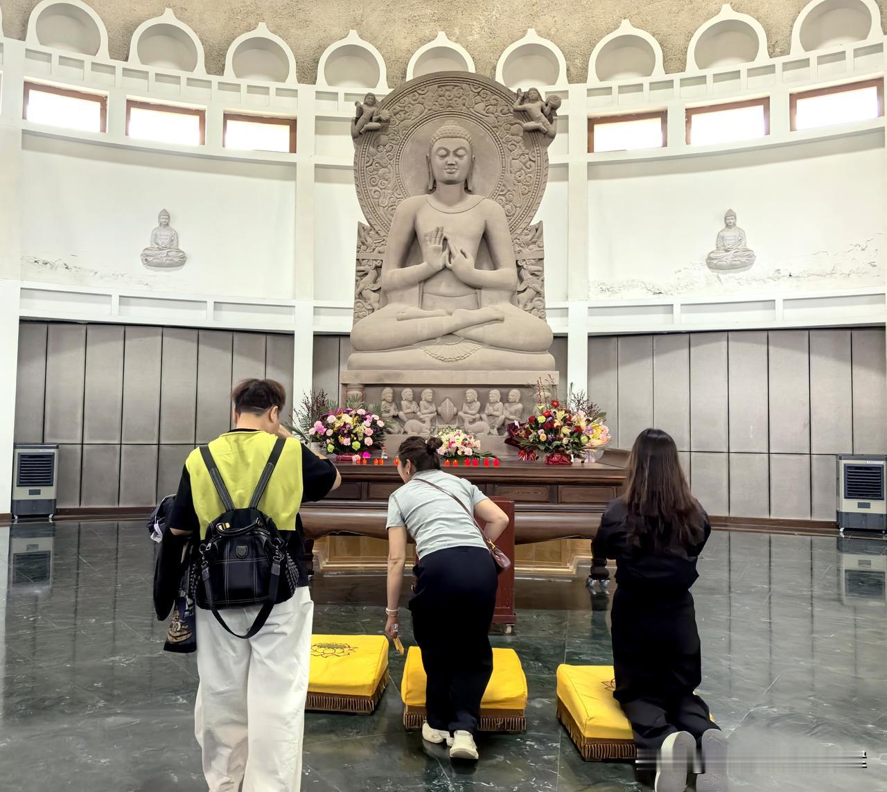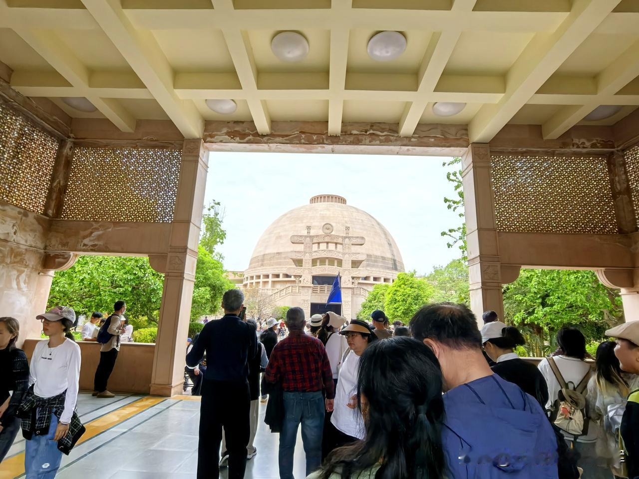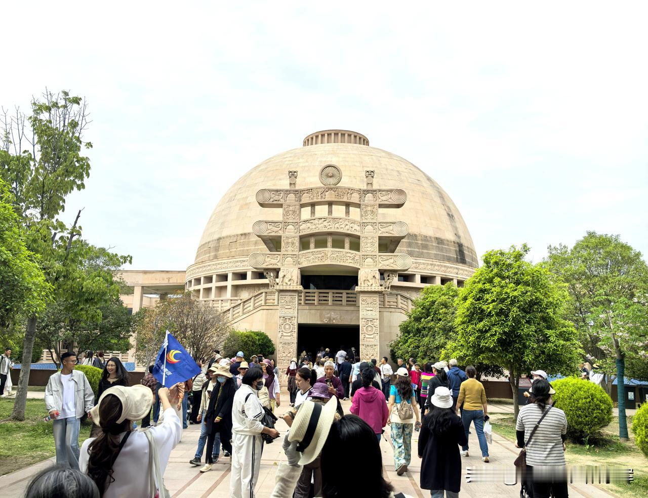 在白马寺国际佛教区打卡了印度风格寺庙,一眼就认出是复刻桑奇大塔的设计。 土黄色的穹顶、浮雕石柱和回廊,完全是南亚佛教建筑的味道。 走进殿内,佛像的造像风格也带着鲜明的印度特色。 不用出国就能感受到原汁原味的异域风情。