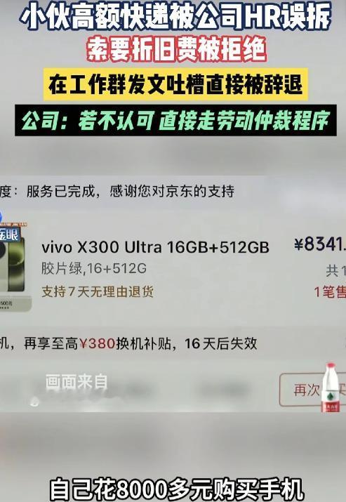 浙江杭州,男子还在试用期,他把8000多的手机发到了公司,结果被人事给拆了,对方不仅拆了快递盒子,还拆了手机塑封,盒子上还沾了油污。男子找到人事,对方却称以为是公司给她买的手机,她是误拆,并拒绝赔偿。男子气不过,把事情发在工作群里,结果公司以私人恩怨,上班时间在群里争吵,影响工作等为由,把男子给开除了,男子彻底懵了!