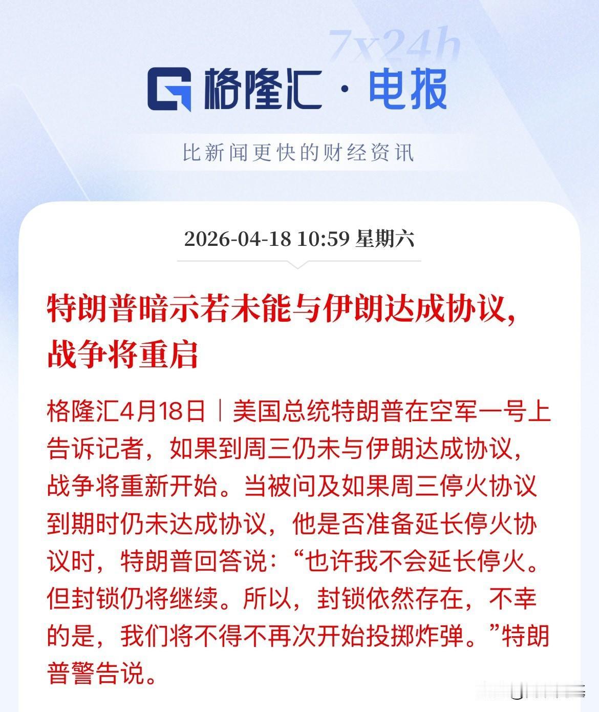 最后期限到22日,还有几天,如果不达成,就封锁加战争重启!特朗普:美伊和平谈判的最后期限到下周三,如果未能达成协议,那么对伊朗的海岸线封锁继续,并且暗示战争将会重启!