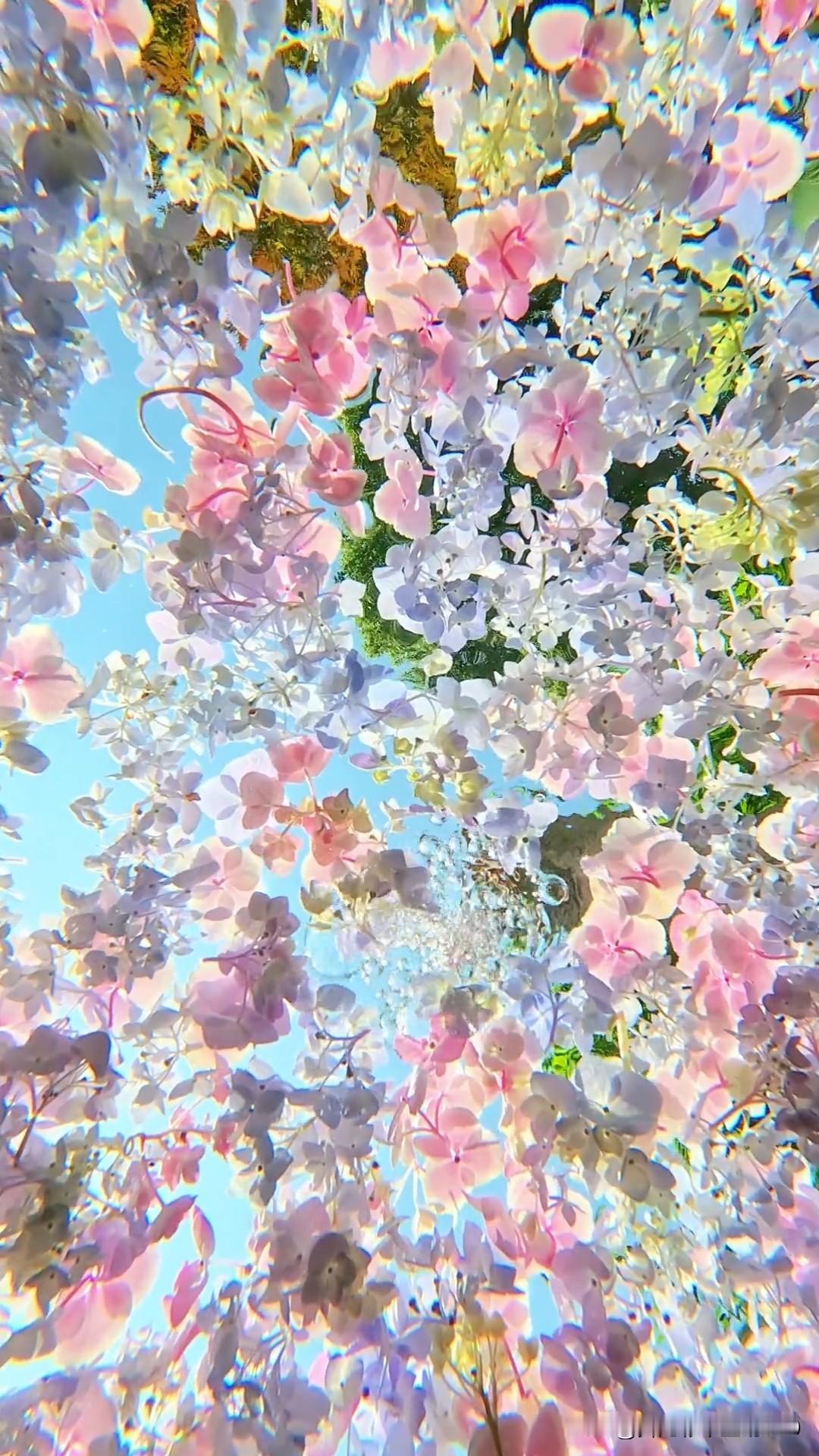 乖乖嘞!这随手拍直接美到心坎里!把手机往花池里一放,粉紫蓝的花瓣裹满镜头,蓝天当底,阳光透过来,花瓣飘悠悠的,看着就叫人心里软乎乎的。