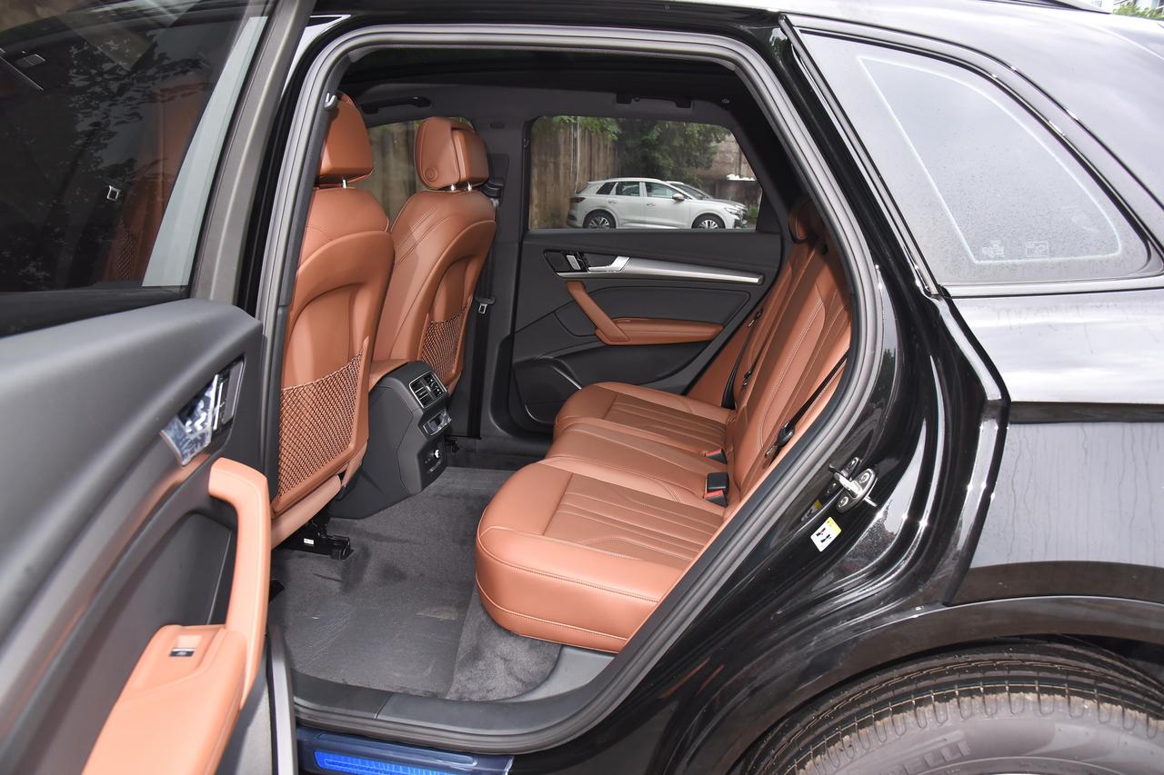 我上周验的 22 款 40TFSI 时尚型,后排坐 3 个成年壮汉不挤,腿部还有两拳多空间,中间地板隆起不算夸张;后备箱塞下工地工具箱 + 露营装备 + 两大箱水果,周末带家人出游完全没压力,比同价位紧凑级 SUV 实用多了,商务接待也有面子。